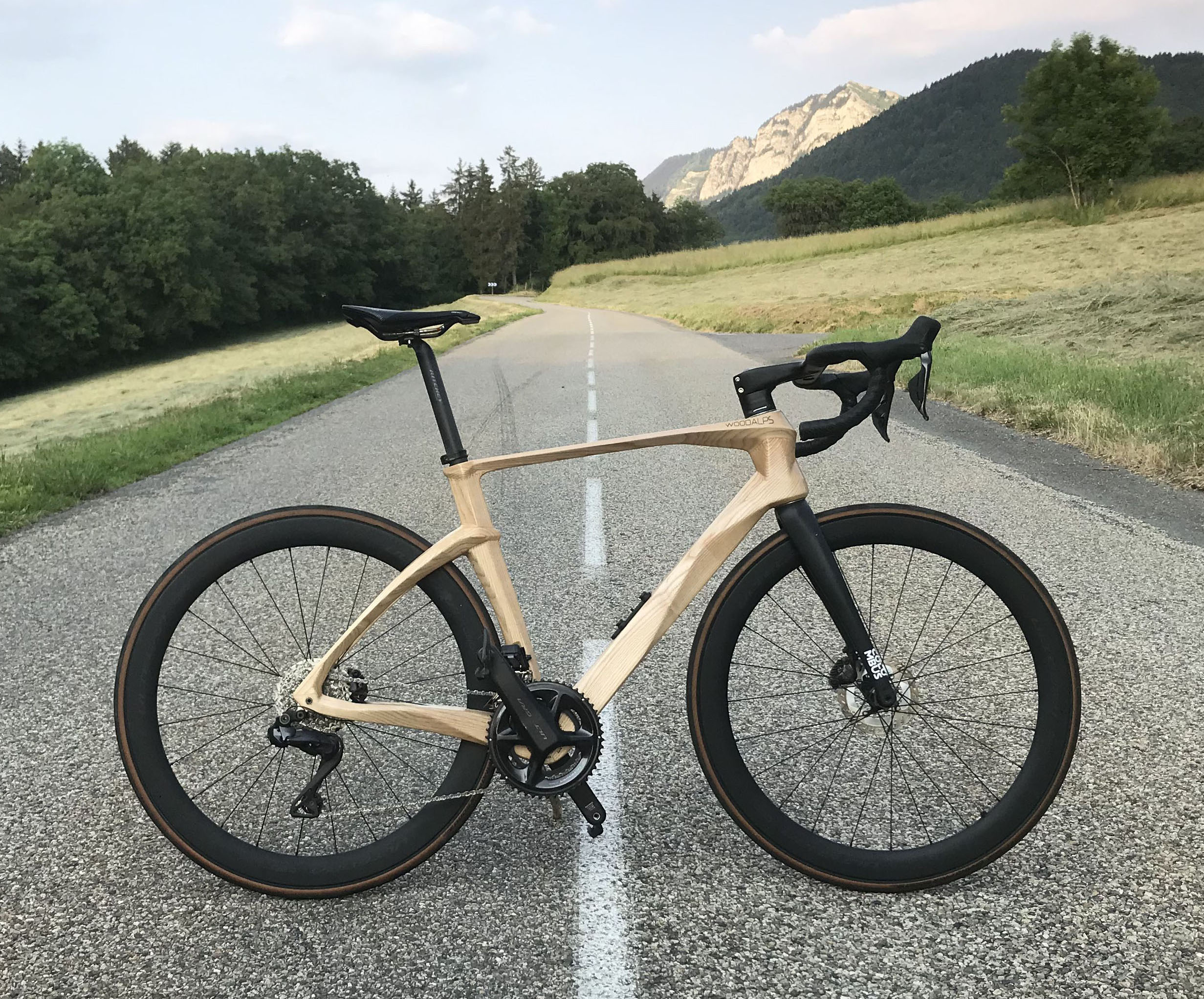 ‘It is stiff, reactive. The particularity compared to standard carbon, titanium and aluminium bikes is the comfort. Most tester feel the additional comfort coming from the use of wood, which dampens the vibrations.‘
