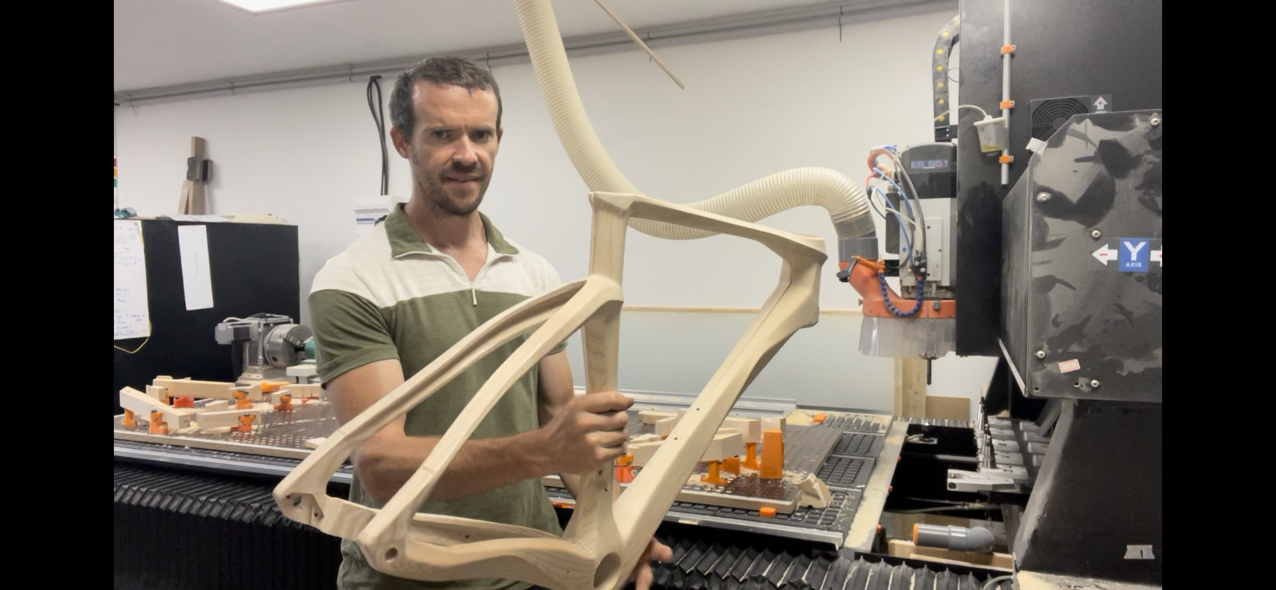 Arnaud is based in Lugrin, near Evian in the French Alps, and has been building bikes for himself for 11 years. 2023 is the first year he’s start selling his bikes, which are made mainly from ash wood ‘one of the strongest local wood in Europe and has a nice wood grain.‘