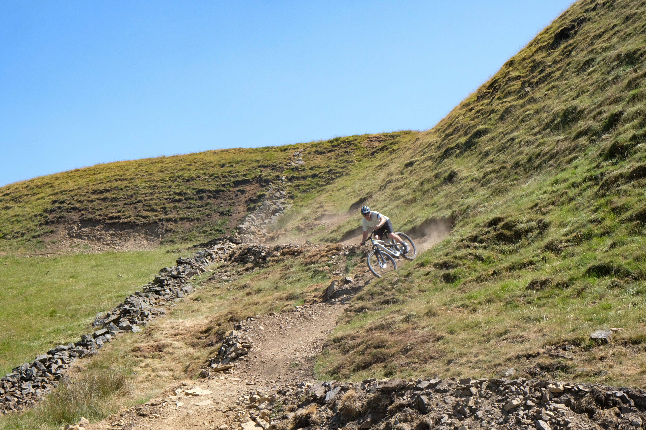 The front and rear dampers do a great job of smoothing out trail chatter, without muting too much, but keeping the bike feeling tight and responsive. And it won’t back down from rocky and rough, but when things get really chunky and fast you can start to reach the limits – but then it is ‘just’ a trail bike.