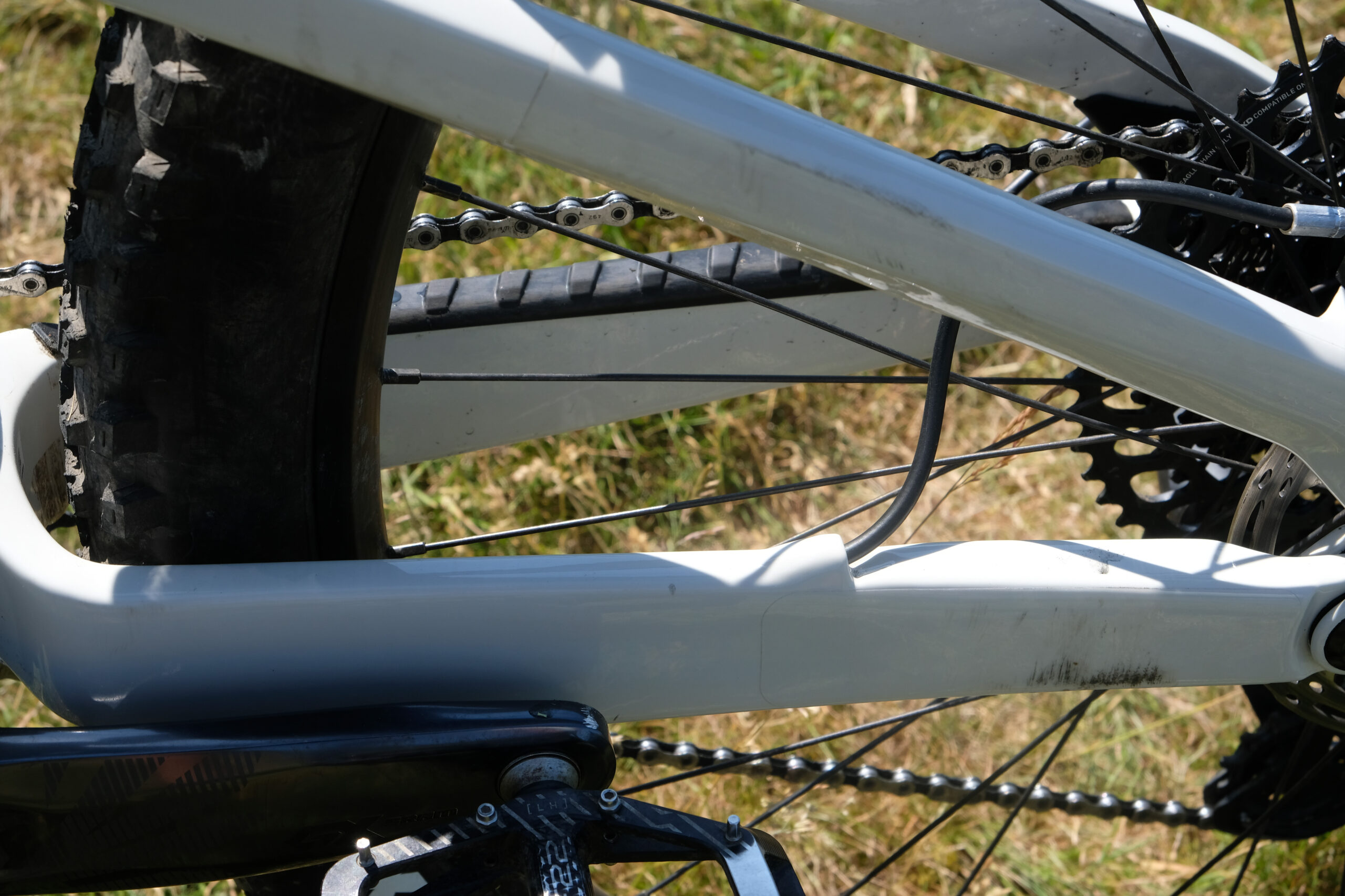 As regards the carbon frame. It looks nice. It’s smooth and curvy without being excessive and tipping into the garishness found on some plastic fantastic frames. It’s yer classic Horst Link four-bar rear suspension layout, which just feels like the most American of all rear suspension layouts doesn’t it? Maybe it’s just us.