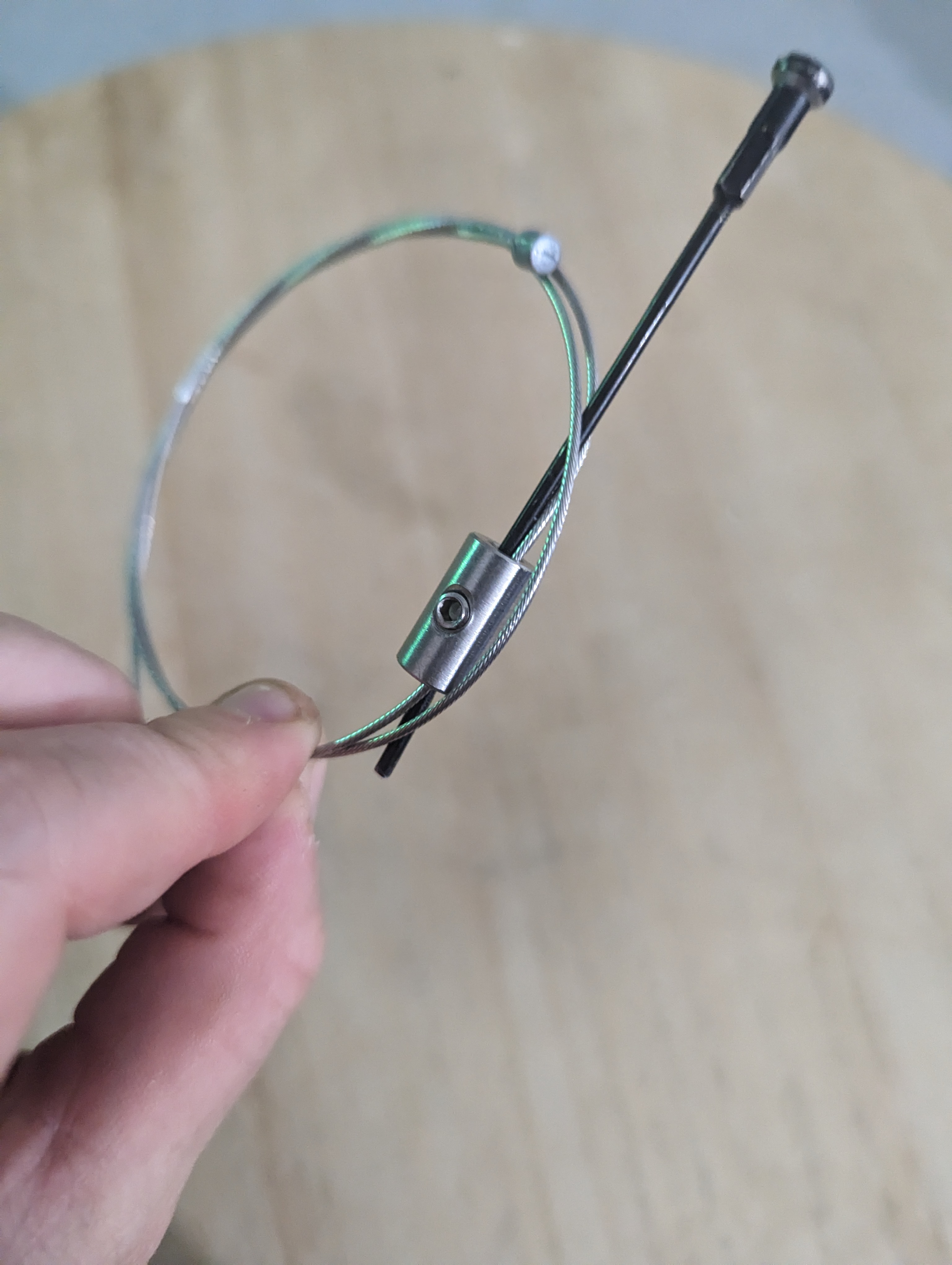 Okay, so I’ve already raved about this so much. But this emergency spoke! Al created it himself using an old snapped spoke, an old gear cable, and a tensioner. And it works so well! You just thread the gear cable through the hub, stick the spoke and nipple in the original hole, thread the cable through and then pull tight, do up the tensioner, then tighten some more with a spoke key. It’s honestly the coolest bodge I’ve seen!