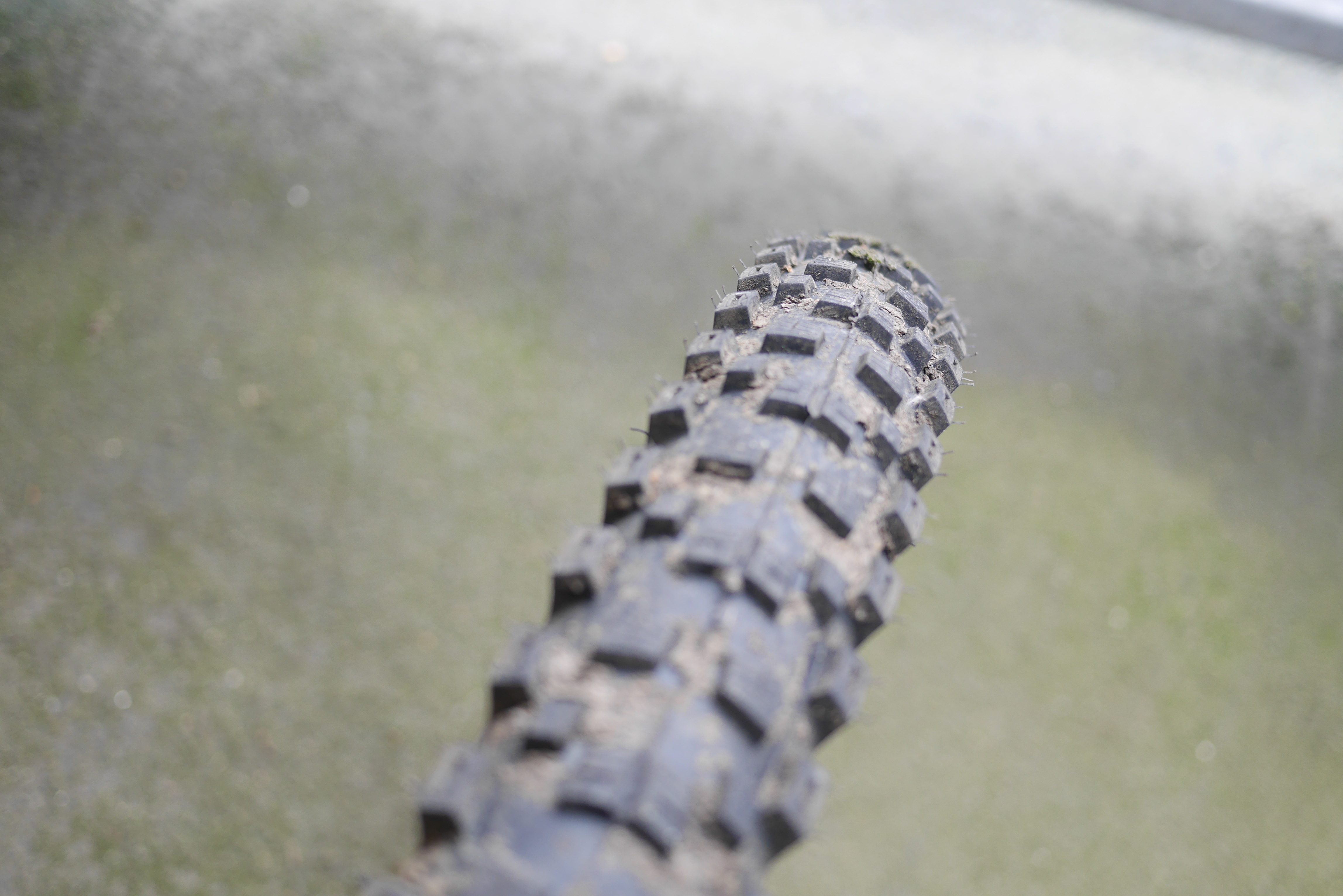 As mentioned, these tyres are the first tyres in the Scorpion lineup to use a dual compound construction. This is because the outer layer is so soft (in the 40s Shore-A range) that it needs a firmer rubber underneath to help support the knobs to stop them folding over and/or tearing under the extreme loads generated by cornering and braking.