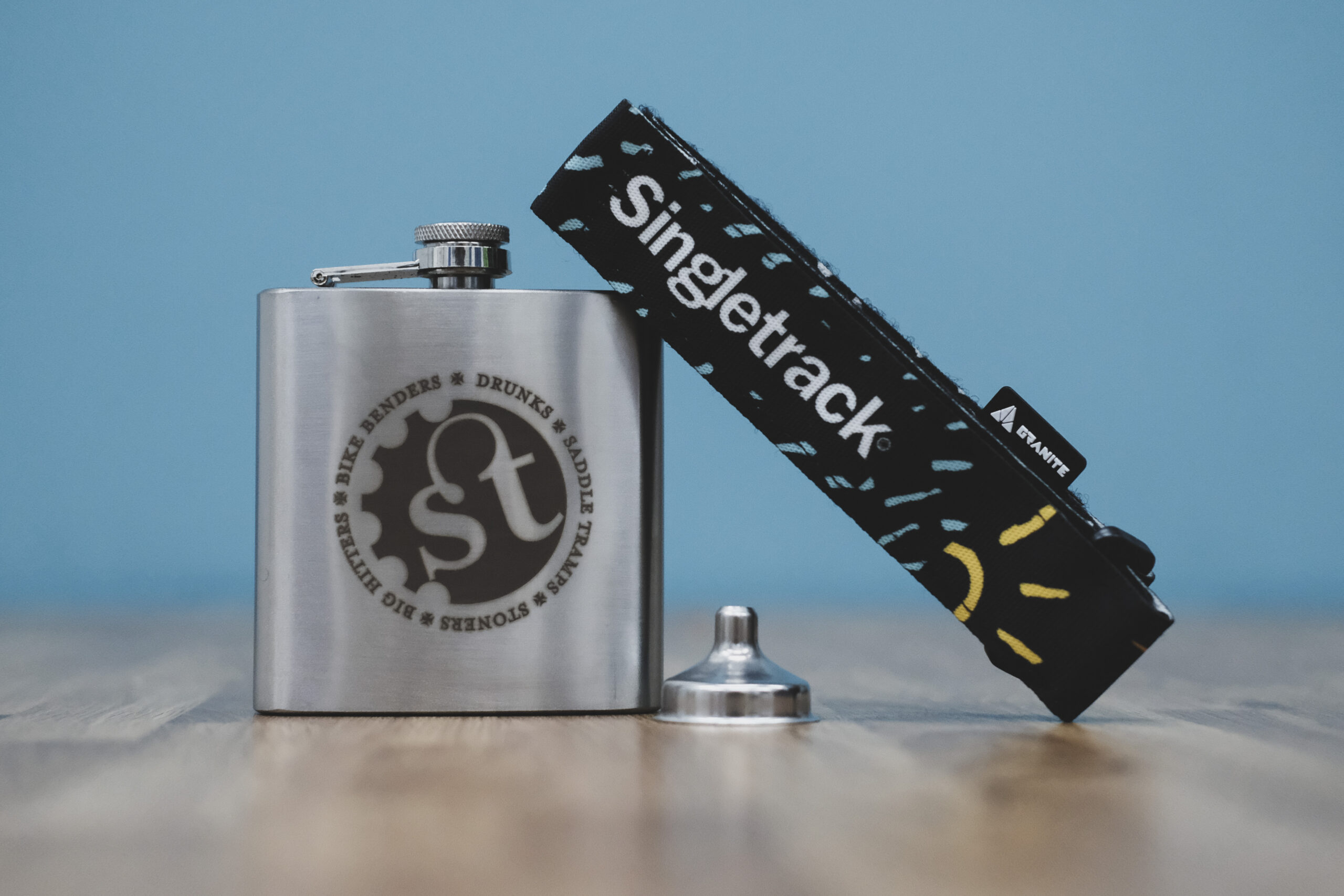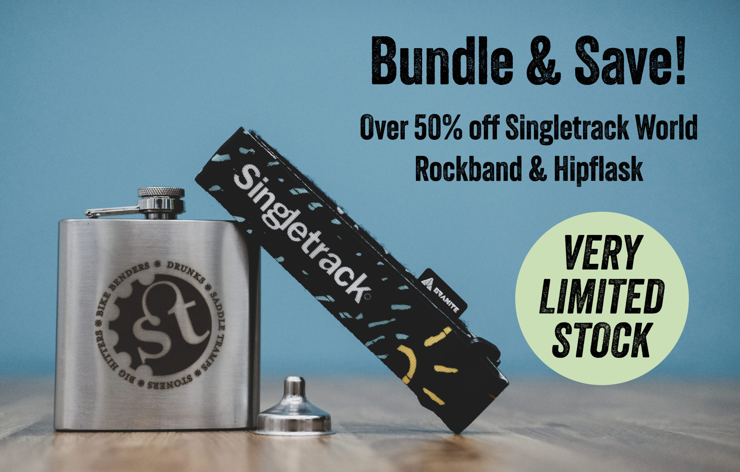 In this awesome deal you get the Singletrack “Desperation” hip flask worth £19.99, and the incredibly handy Granite Rockband enduro strap worth £11.99… all for only £14.99.