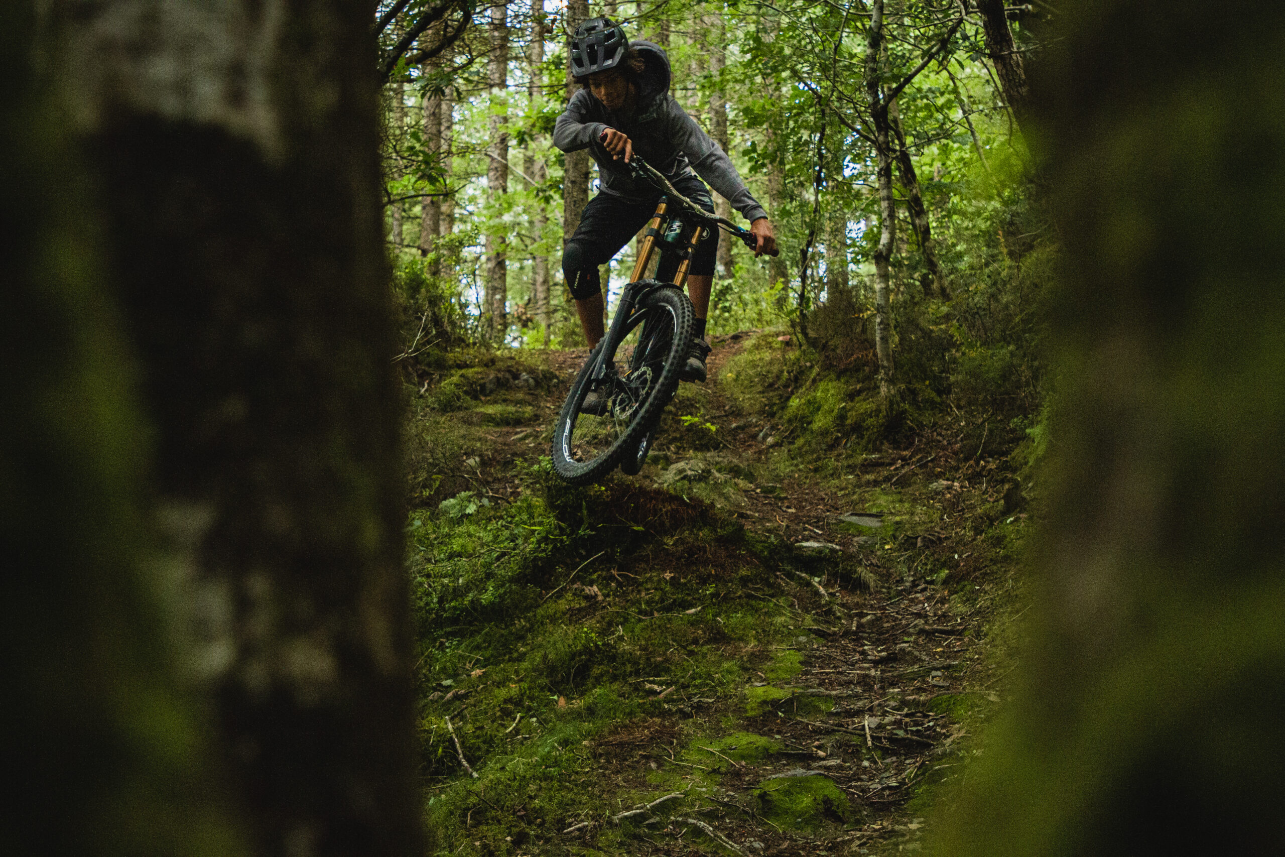 All this adds up to extremely strong progression and serious bike skills. From discovering mountain bikes at 5 and 7 the boys, now 13 and almost 15, are riding with the pros – and keeping up. Ruben was 7 and rode a 20in bike when he was followed by Dan Atherton down ‘Race Track’ before Dyfi Bike Park even opened to the public. When the pros come to Machynlleth for training, Nathan loves to hop in the uplift with them and chase them down the tracks capturing close follow cam or flying high through the air with Brage Vestavik, Dennis Luffman, Bernard Kerr and others. Nathan and Ruben often seek out the ultra-steep off-piste tracks built by Dan in the area. It’s no surprise that they dream of racing Red Bull Hardline one day, although as their mum I’m not overly keen on that!