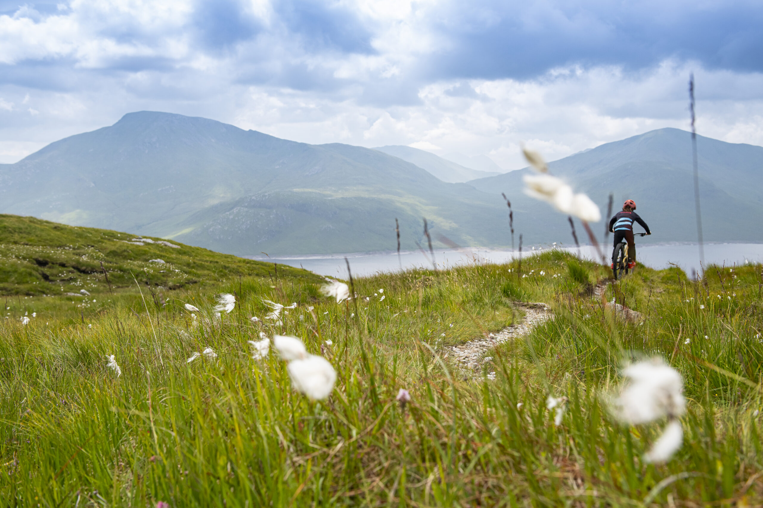 Heading north and west into a little-known corner of the western Highlands, I was off on a solo adventure up a mountain I am very fond of for multiple reasons. First and foremost, this mountain has a 100% eagle record. I’d already seen a sea eagle casting a large shadow on the ground as I wound my way along the old Skye road and, as it turned out, this would be a quarter of the eagles I’d see that day, but 100% of the white-tailed variety. Secondly, if any Purposeful Adventure is to have a reward, then a well-built stalkers’ path that goes over the 800m mark is always going to give you a good return for your efforts. Many moons ago, ghillies carved these wonderful ribbons into the hills to hunt deer and some are still used for this purpose. More often than not they provide the conduit for a seriously good time on a mountain bicycle as their 12 inches of well-drained goodness provides easy passage in both directions. The only downside for anyone who isn’t confident with the bunny hop or the stoppie turn is the proliferation of water bars and very tight switchbacks. Often in unison.