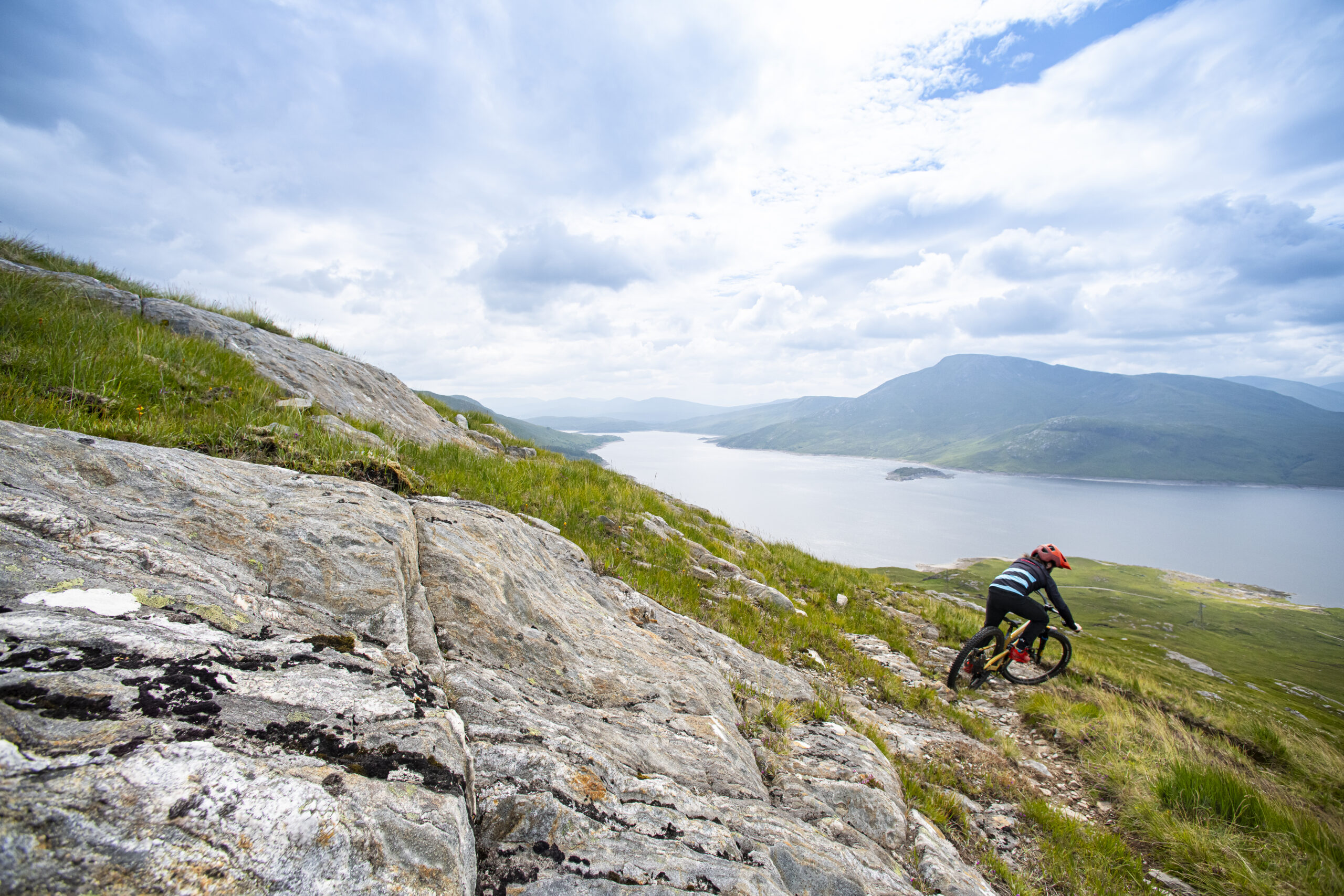 It never ceases to amaze me how quickly you can lose your height on a modern mountain bike. I stopped to get the blood back in my hands and feet, looked up and I was at the power lines once more. The intervening few minutes had been a pure focus on staying on track and not losing the wind from my wheels on the drainage bars that came and went. Before long I was spat out onto the road above the sprawling loch, hands and feet offering that sting that indicates you’ve given it a good old go.Â