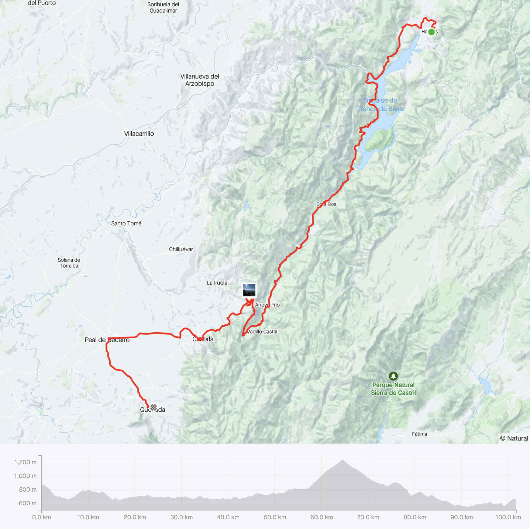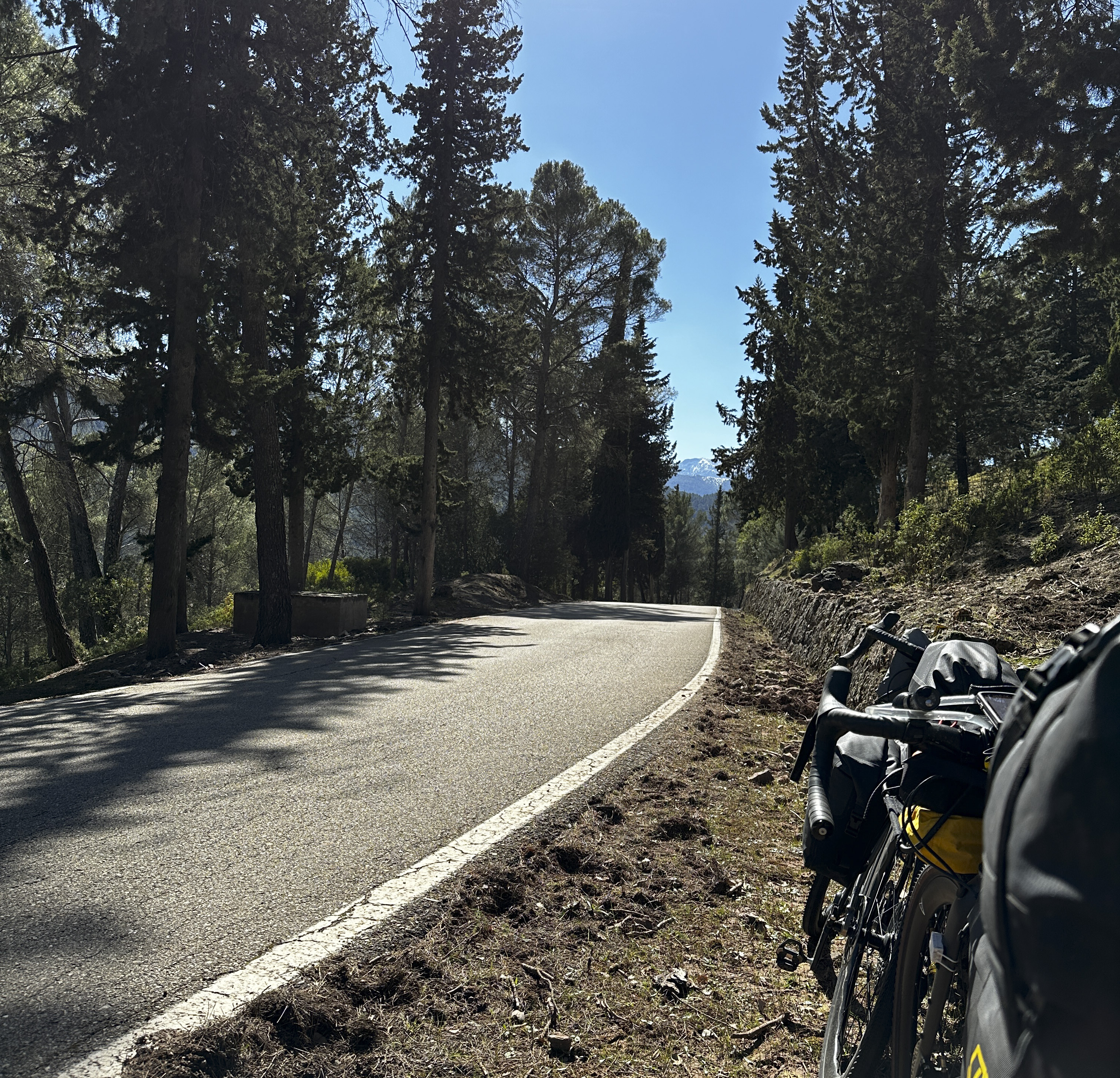 I’ve woken up feeling defeated by the day before it has really begun. There’s nothing quite like the vulnerable, inescapable pain and discomfort of the menstrual cycle to put a dampener on a bikepacking trip. Rhys is very considerate (or just terrified of having his head bitten off), so the morning rundown of the route is delivered in a way that makes it sound achievable and possibly even enjoyable. Down, up a tiny bit, then staying below 700m altitude for around 50km. Up a hill, down the other side and descend all the way to Quesada. The low altitude is the reassuring part given that we spent last night navigating our way around snow-blocked roads.