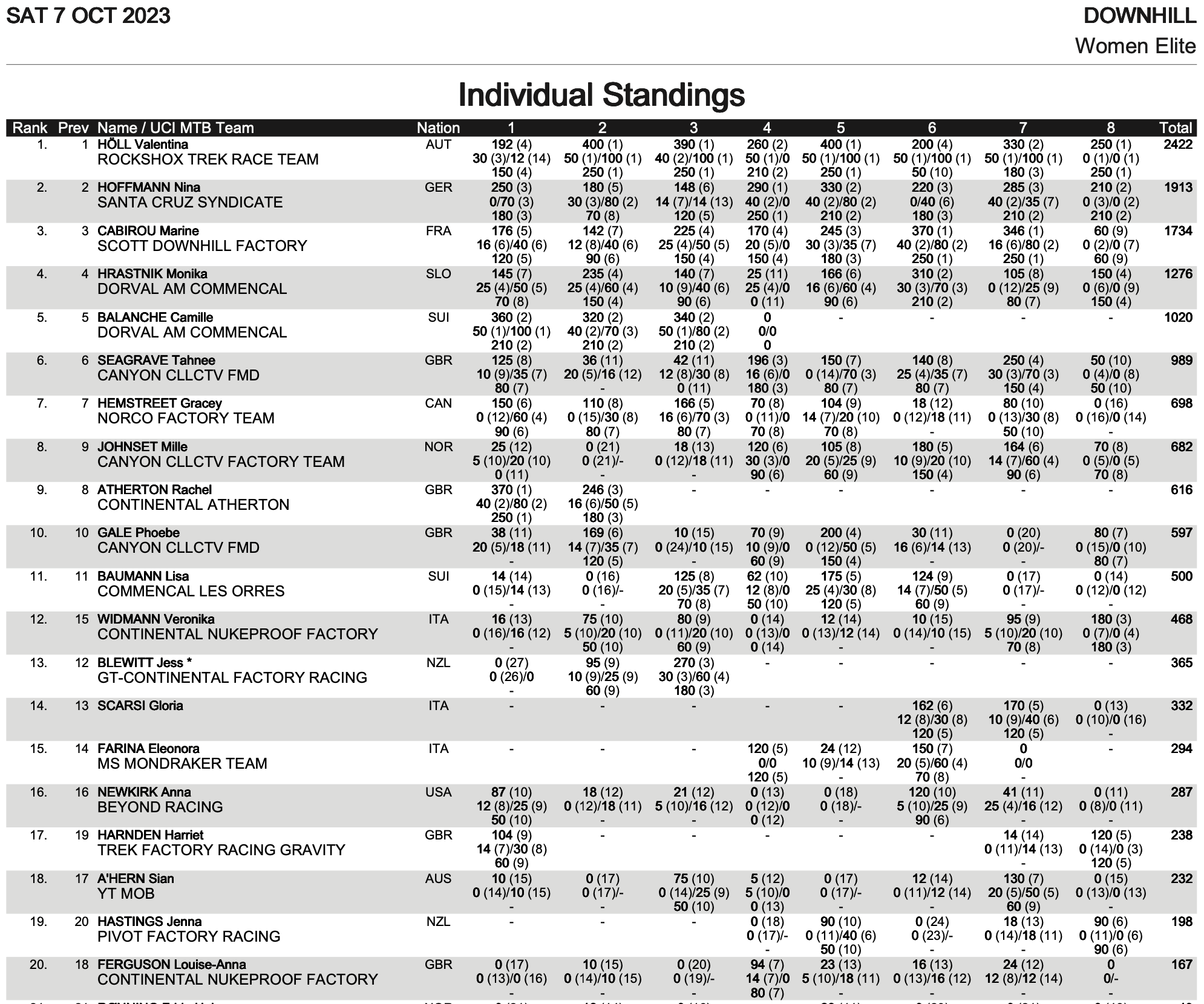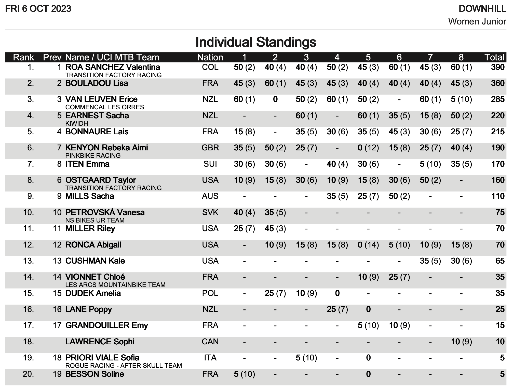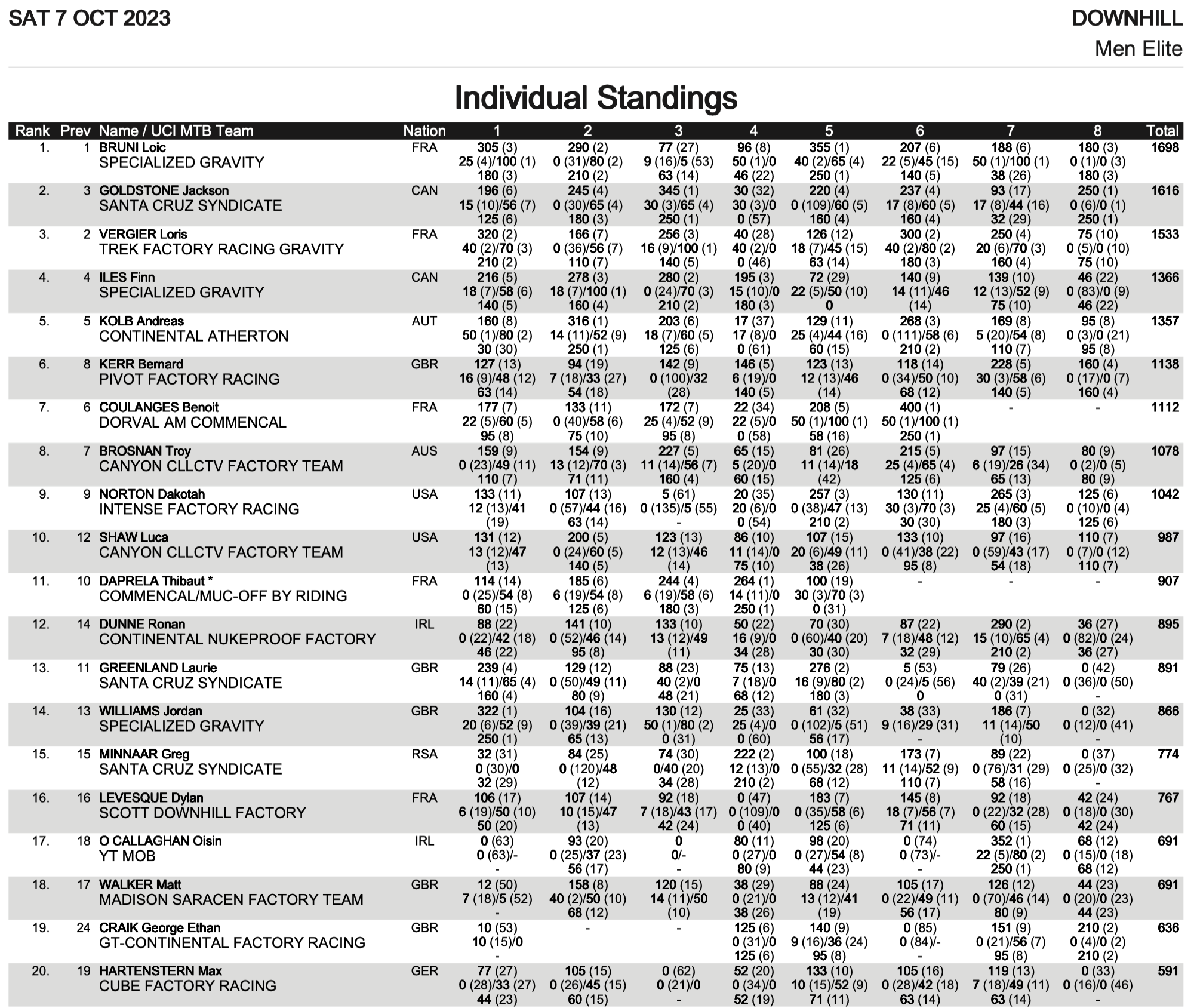 Congratulations to Valentina Roa Sanchez (Colombia’s first ever Overall winner?), Ryan Pinkerton, Vali Holl, Loic Bruni and the Santa Cruz Syndicate (who lost the war but won the battle for Best Team).