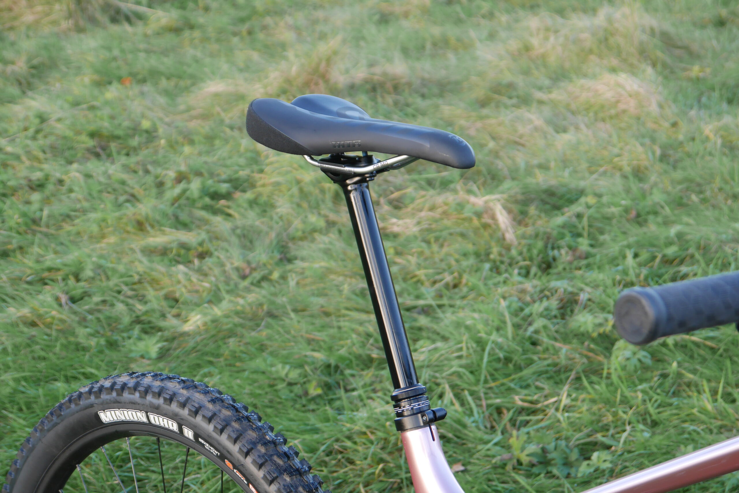 Build kit. Shimano SLX drivetrain. Shimano Deore brakes with 203mm rotors. The 200mm travel TranzX +RAD Internal dropper (the ‘+RAD’ means it can adjusted 30mm in 5mm increments, no-tools required) is paired to a nice Shimano dropper remote. Wheels are DT Swiss 370 hubs laced on to WTB KOM Trail i30 rims. The tyres of the bike industry ‘Standard Issue’ Maxxis Assegai and Minion DHR II combo. Kona themselves describe the suspension as “ultra-squishy”. We shall see. It certainly seems very much on the squishy end of the spectrum.