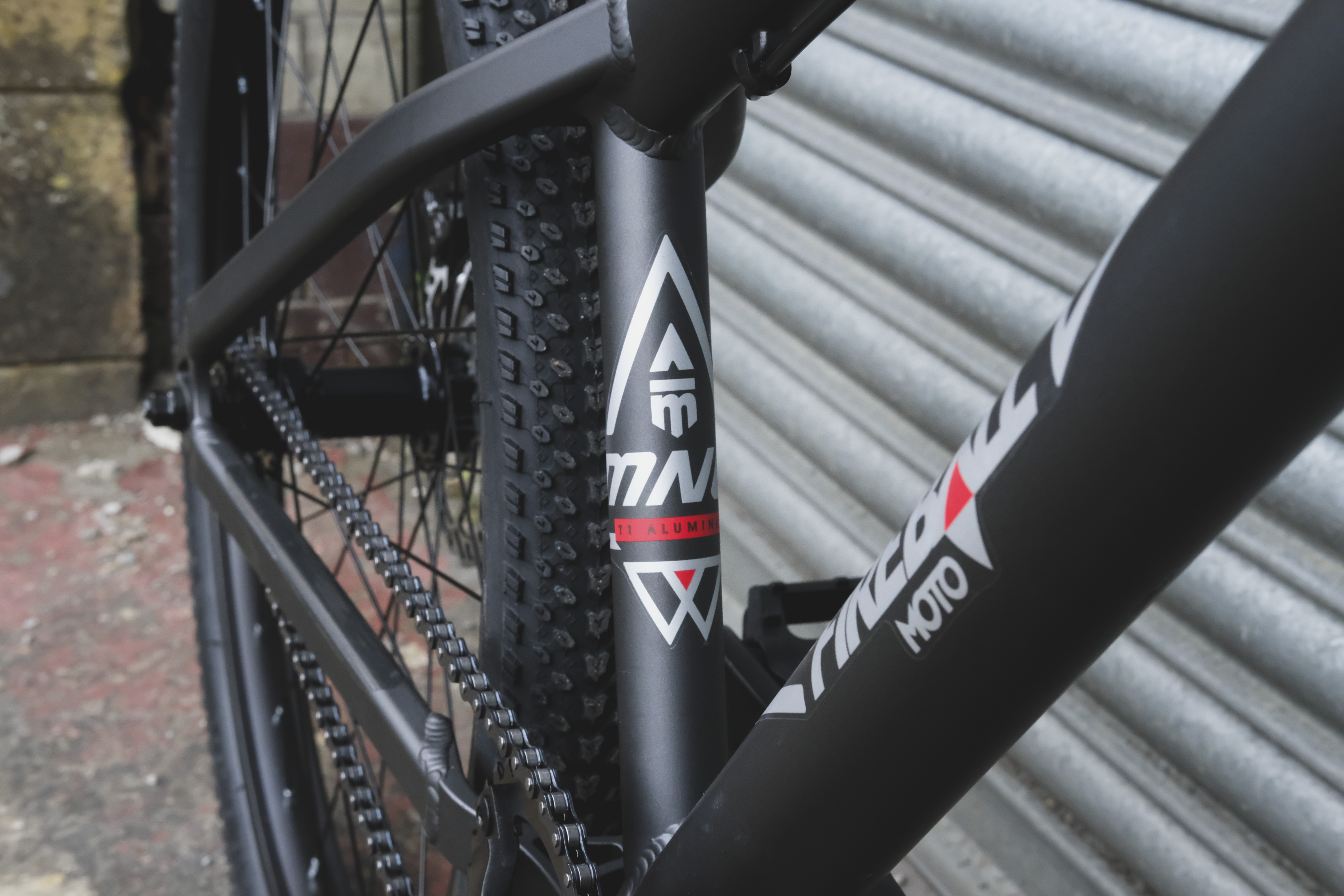 The bike has almost totally cured me of the aging MTBer’s bad habit of hanging off the back of the saddle when things get hairy. If you hang off the back of the Mongoose Fireball Moto you go wrong. Usually you crash. Usually on hardpack or tarmac. You quickly learn.