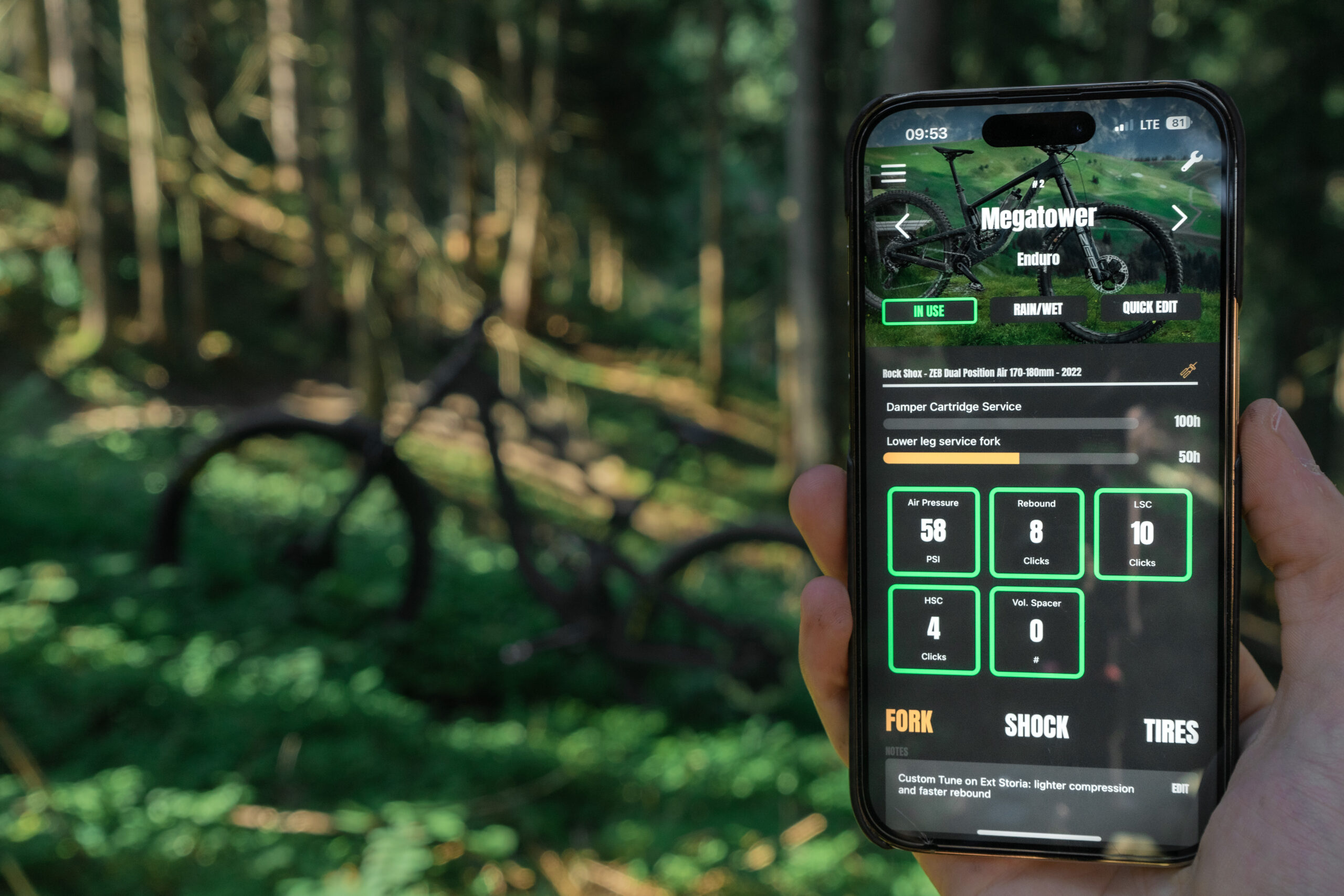 Beside a clear interface where you all of your settings are saved, there is also an AI algorithm, SAG Guide, tire air pressure calculator that makes it easy to create a good basic setup. Based on physique, these guides suggest bike settings. All matching parts that the rider has on the bike can also be created. Finally, there is a balance test, with which the user can determine whether his suspension is balanced between the suspension fork and damper. Thus, the user has a good basic setup, which is half the battle when it comes to the settings on the bike.
