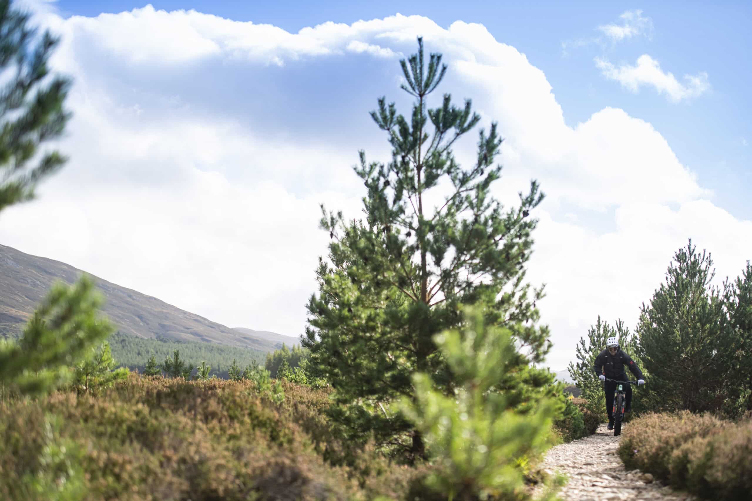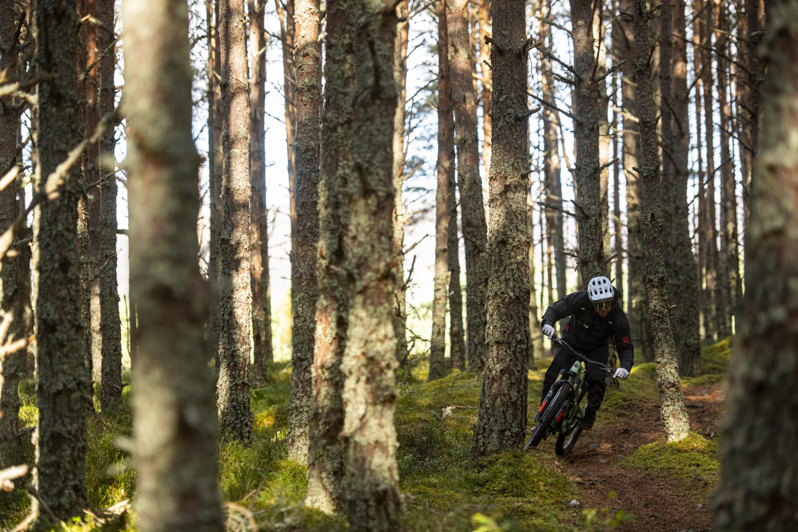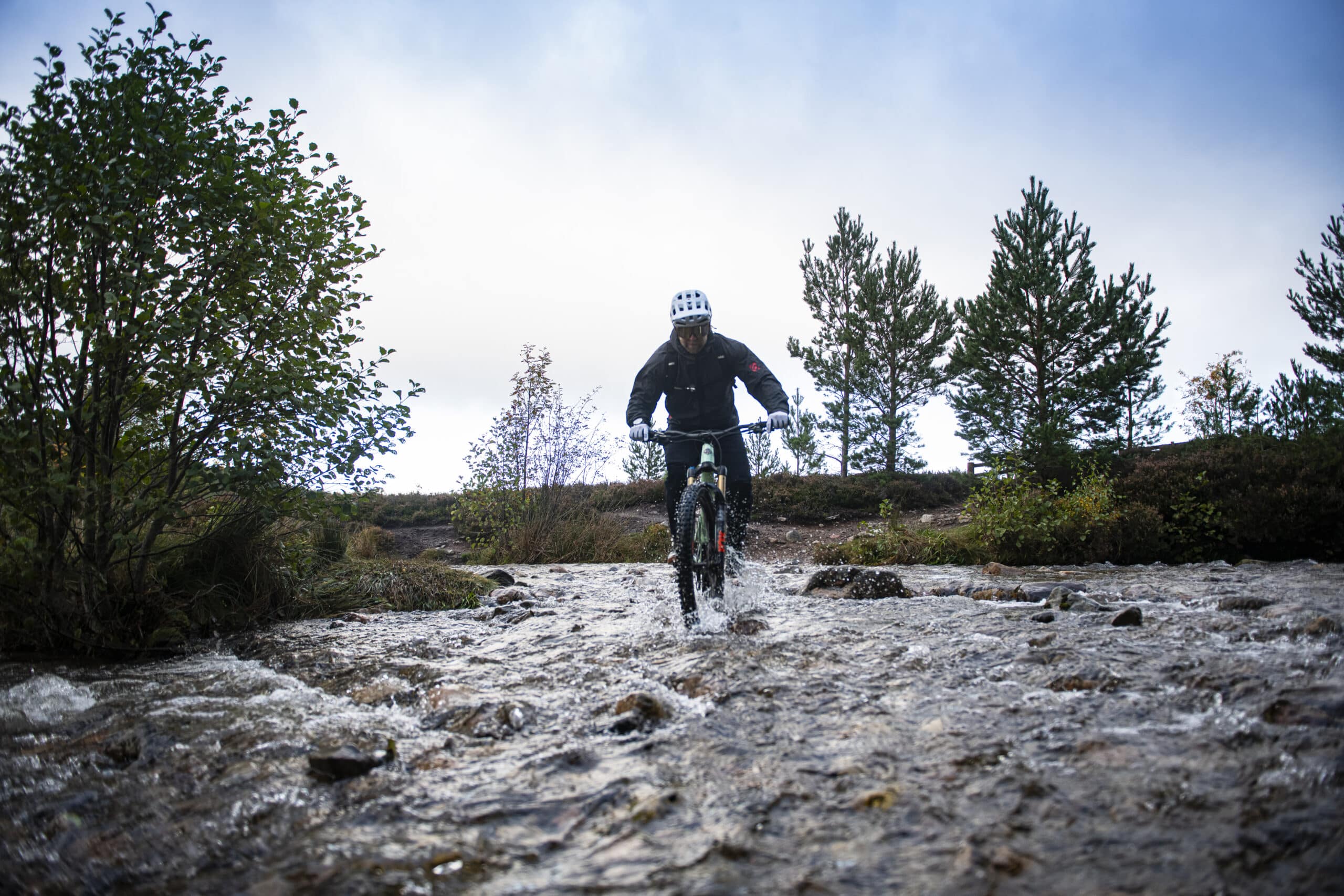 Iād be meeting mountain bike guide extraordinaire Chris āThe Bearā Gibbs where the tarmac fizzles out in Glen Feshie to make our way to the pools high on one of the River Speyās bigger tributaries. The added bonus of this is taking in the regenerating landscape thatās benefiting from the rewilding efforts going on here. Part of this regeneration includes removing any infrastructure put in to alter or manage the watercourse, but also extends to deer management, removal of non-native tree species, bog regeneration, seeding of high alpine flora⦠The works. Everything that goes into returning the land to what it would have looked like before the Industrial Revolution. This is part of the 200-year vision of the landowners, the Povlsens. In fact, my pal Ronan, a handy rider in his own right and Conservation Assistant at the outfit tasked with delivering this vision, was due to join us or meet us en route but was on the far side of this sprawling estate attending to reports of a group of stags that had made their way through the boundary fences. Removing deer from the estate has allowed saplings to thrive unmolested wherever the seeds may have fallen.