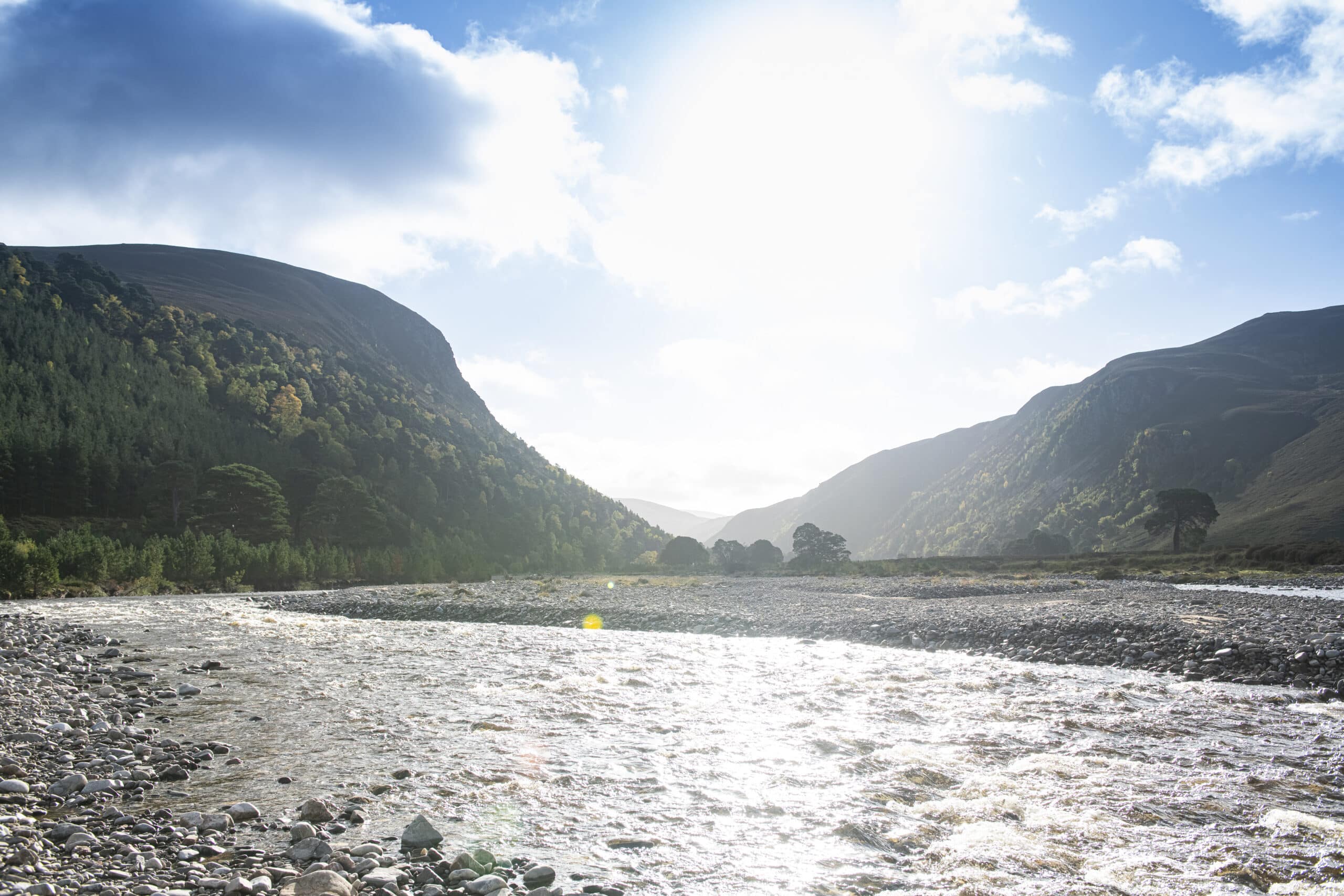 The opening miles are easy. A nice, well-built path leads us up the southern side of the Feshie, with the Scots pines beginning to poke their way through the heather, with the older granny pines already visible high in the glen. On the flanks of the glen, broadleaf trees catch the sun and immediately add a dash of colour to proceedings. Itās not long before we take in a river crossing. We knew this one would be coming⦠itās unavoidable this one. Further along the path, the steps cut into the gulley that was washed away in previous floods have once again vanished. We head upstream to find the log bridge gone too. More wet feet, but weāre soon making good progress through the mature Scots pine forest as the sun breaks the cloud once more.
