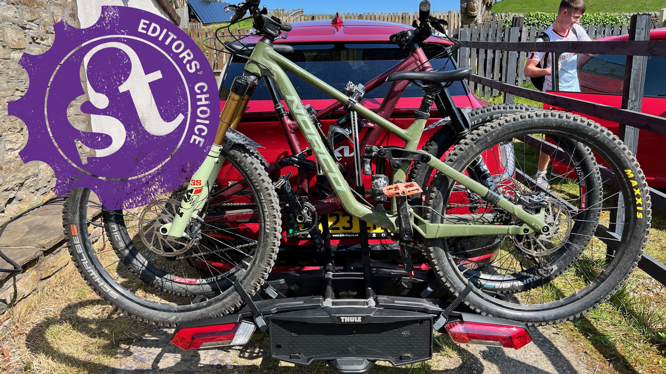 “Yes, the Thule EPOS Tow Ball Rack is crazy expensive, but for that investment, you get the least amount of faff I’ve ever known in a bike rack. It can literally be fitted and locked in place in seconds, including the electric hookup (with all lights and indicators built-in). On our Instagram account, I demonstrated how you can load a bike on this rack in under 30 seconds from it being folded and in the boot to outside, on the tow bar with a bike attached. Two extending arms let you grab your bikes (two in the model I have, but up to three in the next model up) at any convenient point on the bike – seatpost, downtube, top tube… wherever is easiest. The locks and straps are built-in and, best of all, the entire rack folds up in seconds to the size of a small suitcase. I’ve been putting bikes on and in my cars for the better part of 30 years now and I reckon I’ve just about tried every iteration and innovation at some point. The Thule EPOS Tow Bar Rack is the best bike rack I have ever used.” – Mark
