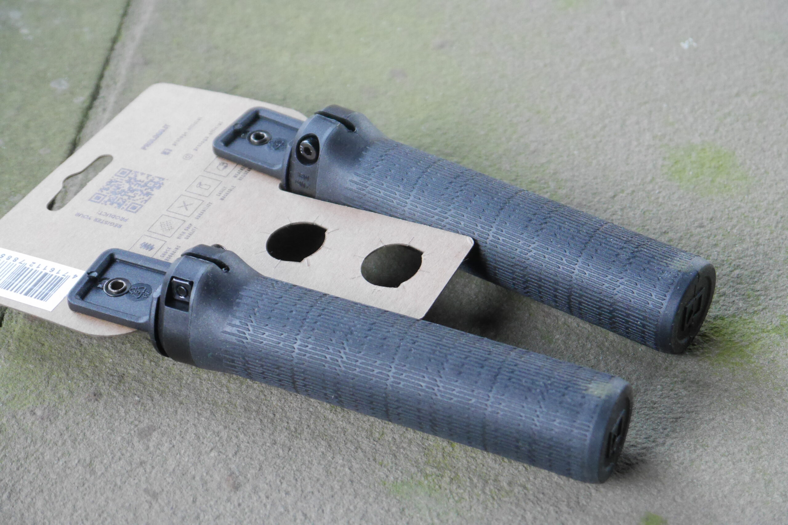 This is another product with dubious distinction of having ‘designed for e-biking’ alluded to it. Grips is grips, man. Anyhoo. These are 132mm long and 30mm wide. The core and collar are made of a single piece of injected (recycled) nylon, the results in 93g (for the pair) weight.