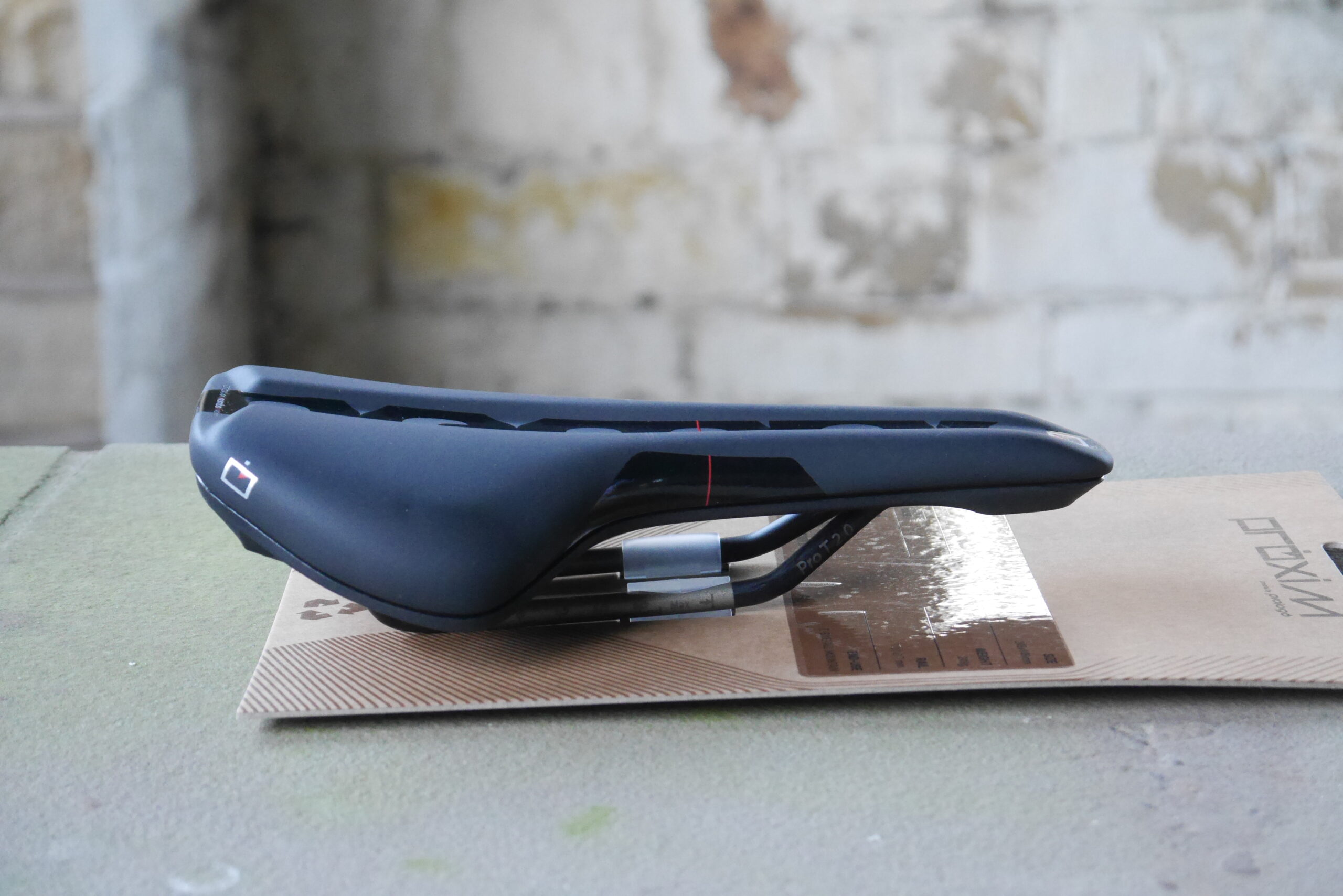Flat shape and short. The wider nose increases “rider stability and bike control”; and the rounded rear shape for “easier entry and exit from the saddle.” For those seeking greater comfort, this 145mm wide version is available, with increased padding. The padding on both models is made of variable-density foams. The Nembo features a wide central channel, along the entire length of the saddle. The base is made from “carbon-injected nylon.