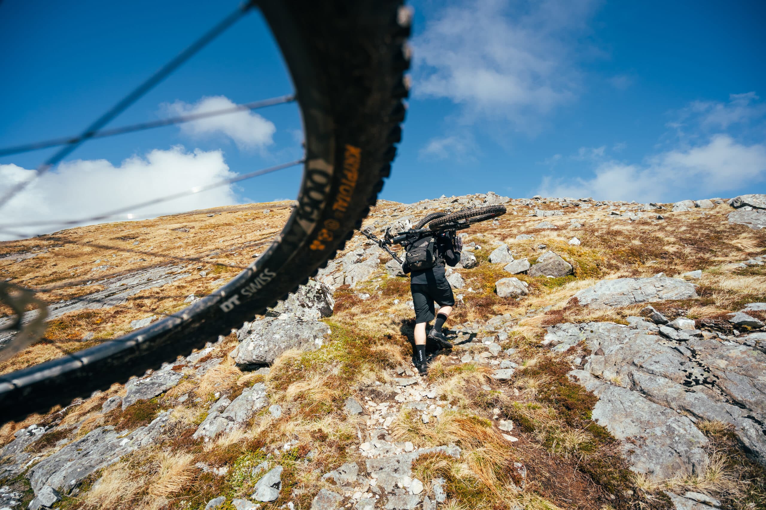 Most big days out are usually engineered around a banger of a final descent, a crescendo of stoke, ready to spit you off the mountain frothing with energy to get you fired up for the next adventure. Maybe it’s that we’re both utterly knackered, and wish this moment had come six hours ago, or maybe it’s just that this last descent isn’t actually all that good, but Luke and I aren’t feeling this. It promised loads, starting with a delicious rocky slab into some switchbacks, but more often than not it’s just too vague, too slippery and too chunky to find any sort of rhythm. My frustration turns to anger, and before long I’ve given up, walking down sections I’d have attempted six hours ago. I’m glad that we’ve dropped out of the light and there are no more photos to be had. I just want to go home. I’m done.