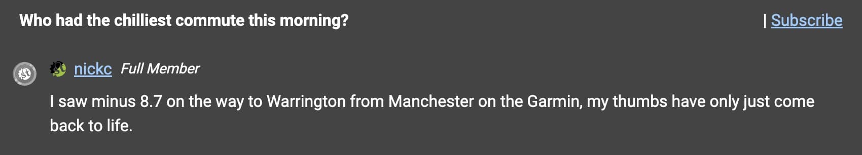 This week’s winning thread goes to nickc because who doesn”t like talking about the weather eh?