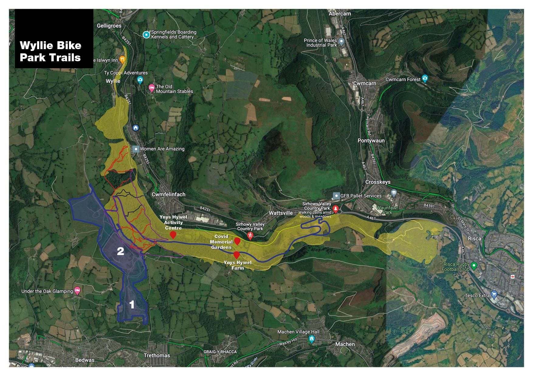 Residents in this neighbouring valley aren’t impressed. They say the access road will bring dust and contamination down into their valley, through the nature reserves, Country Park, and even a Covid Memorial garden. While most of the road already exists as a forest track, some additional construction would be needed – and the operations would close this forest track to all. The route up to the start of the Wyllie Bike Park trails would be lost, as would the access through the forest that forms part of a popular ‘4 Peaks’ route in the area.