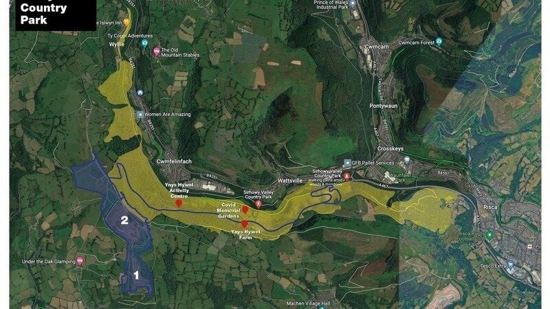 It’s a complicated situation: an area known as the Bedwas Tip that contains spoil from old mining operations has been said to pose a safety risk – mostly around potential water contamination and fires on the site due to the presence of coal, rather than a risk of collapse as is an issue at some sites. ERI Reclamation hopes to process the spoil heaps and extract the coal, before redistributing the cleaned spoil safely so that the land can be reclaimed or regenerated. The sale of the coal will then offset the cost of the works. But an access road to the processing plant is needed, and ERI Reclamation has deemed the options on the Bedwas Tip side of the mountain to be unsuitable. Instead, they’re suggesting a more appropriate access is up and over the mountain, and down through the adjacent valley and Sirhowy Country Park.