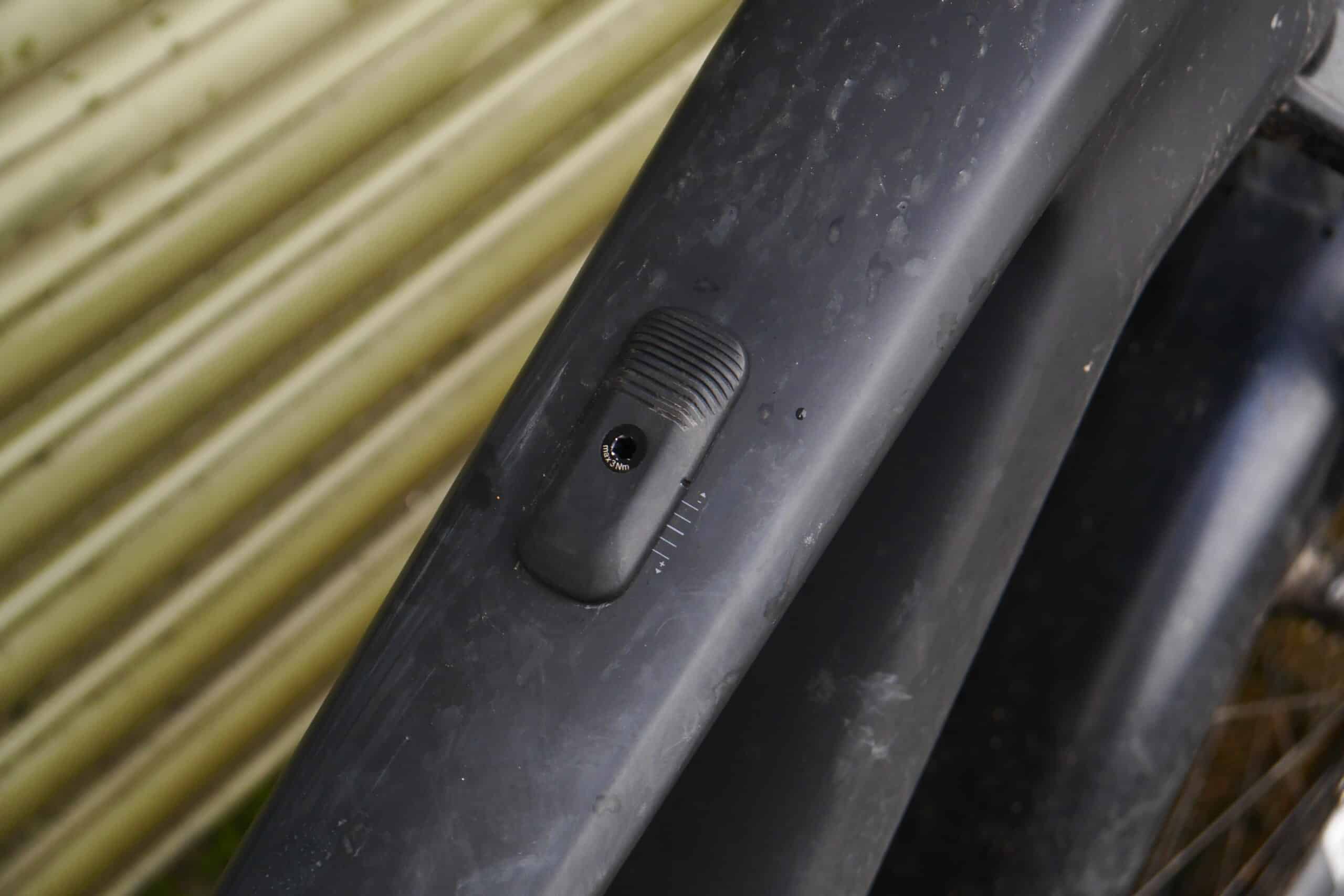 Oh and yeah, there’s frame storage in the down tube. To combat water ingress into the down tube storage compartment there’s a very positive snap-shut opening mechanism. The lid’s hinge pins are stainless steel and the attached bottle bosses are brass. It’s as weatherproof as is feasible, essentially.