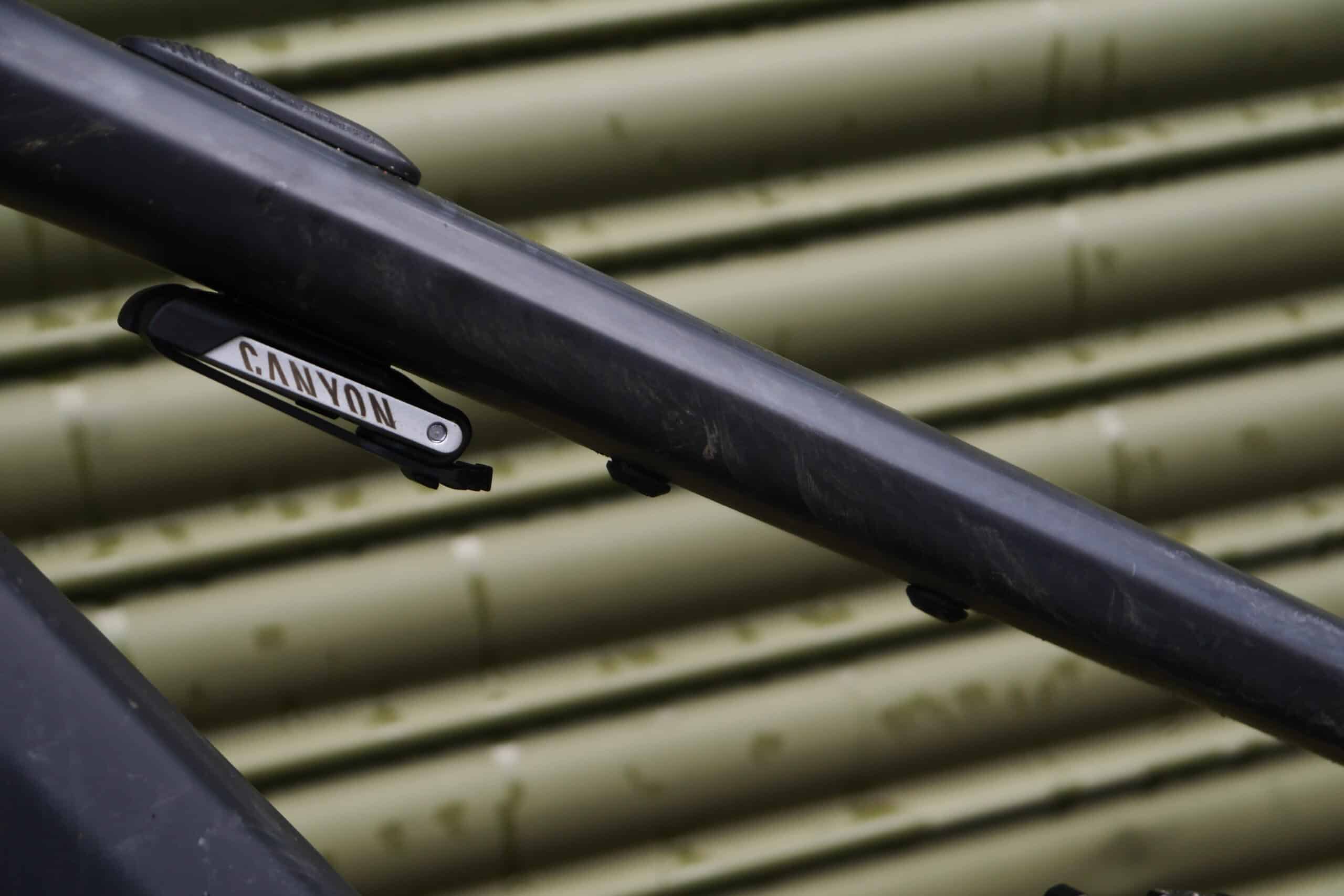There’s space for a 600ml water bottle which will need to be adhered via side-loading cage or else you could go for a Fidlock system. There’s also a set of accessory bolts on the underside of the top tube (which is holding a Canyon multitool in the photos shown here).