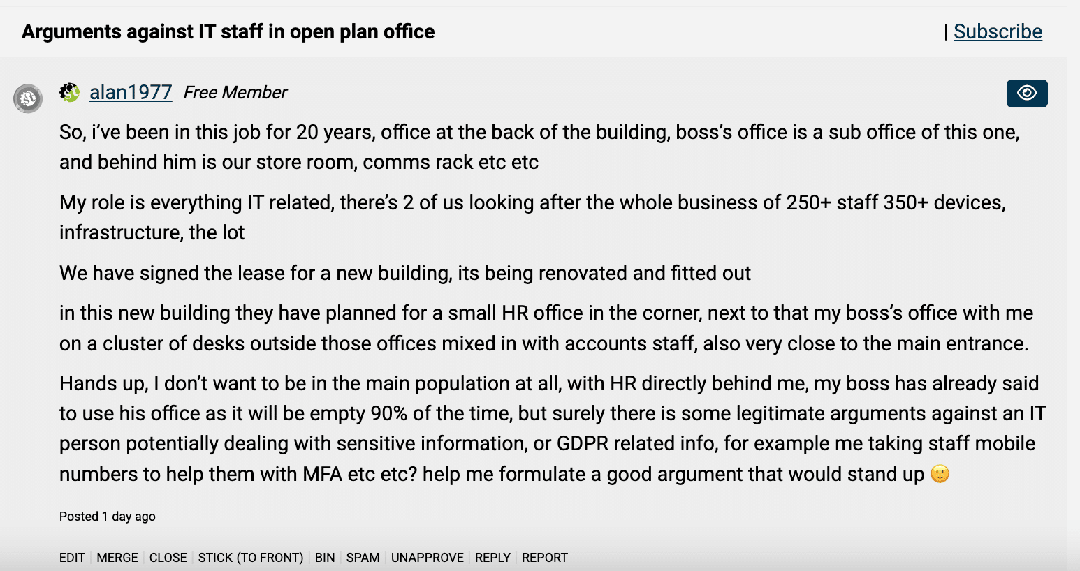 Congratulations this week go to @alan1977 for this thread. Basically seeking supporting arguments to help them be kept in a basement with no natural light or ventilation?