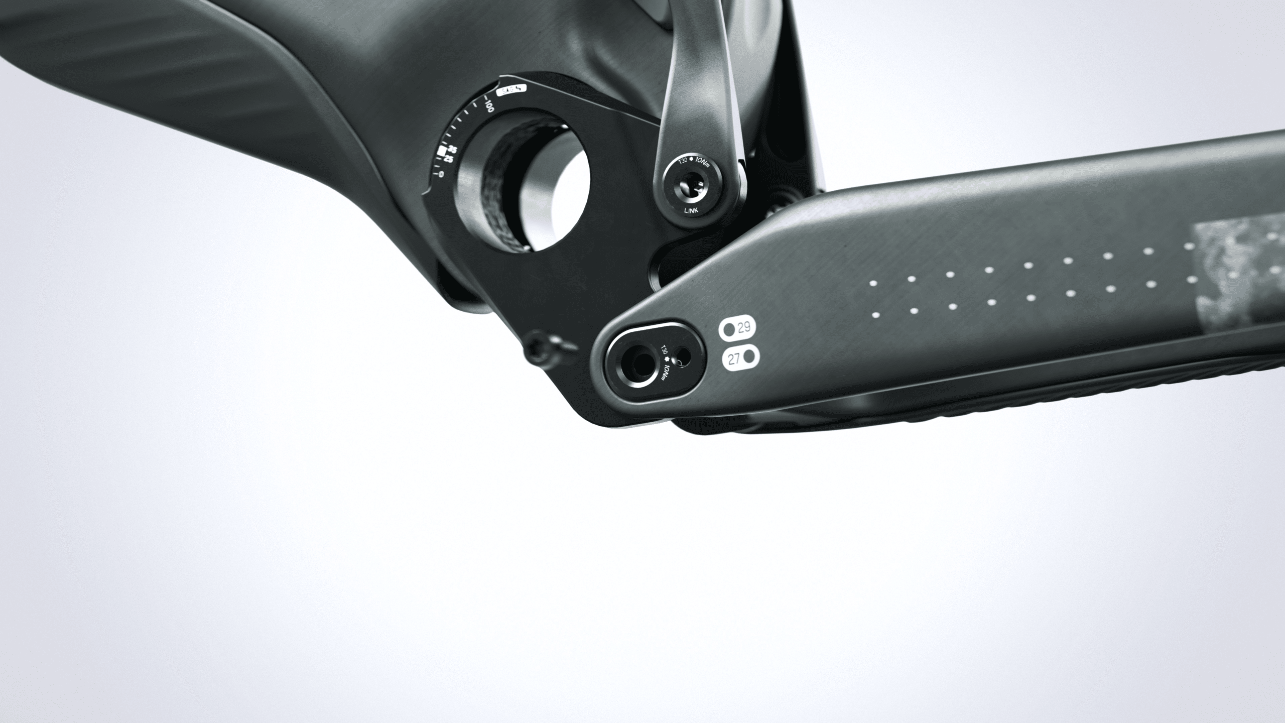 The 6-bar allows us to choose exactly how the suspension performs, providing us greater control to tune each parameter independently from each other resulting in fewer compromises and a better control of balance. By looking at the bike as a system, this flexibility allows us to engineer this sweet spot between suspension performance, efficient load transfer and an optimized frame layout.