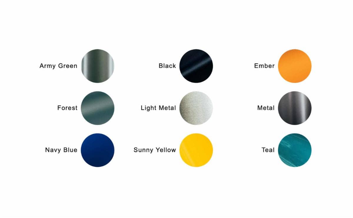 The stock colour is Cirrus – as shown in the photo above. However, for a small upcharge, we are offering an A La Carte colour choice of 10 different frame colours, and because the graphics are painted on, we can also offer the same 10 colours on the graphics too. Plus gloss or matte finish. That’s 200 potential combinations. Mix n’ match to your hearts content.