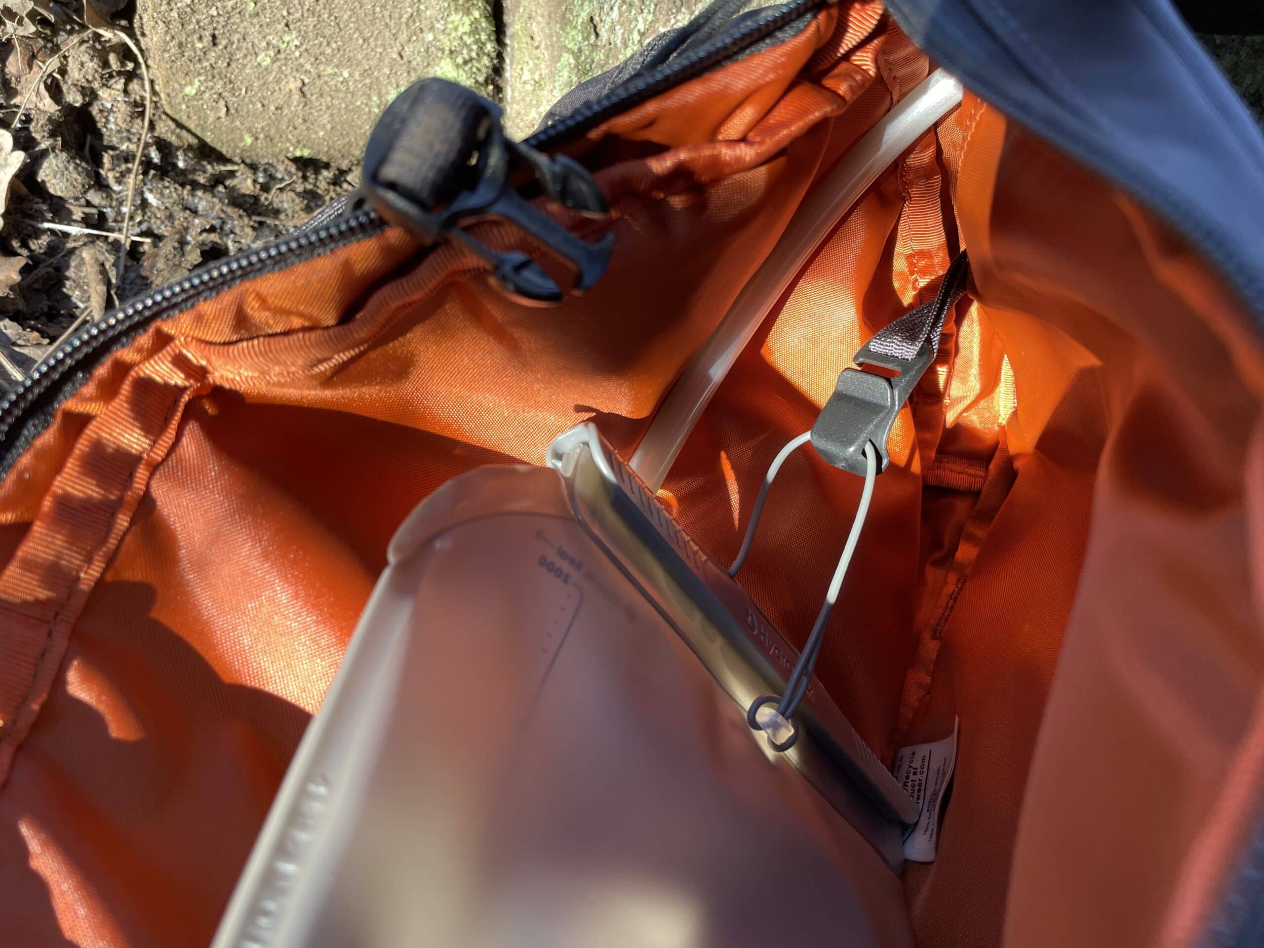 The absence of internal pouches or pockets in the main section has thrown me. The elasticated loops don’t really serve to replace the presence of pouches – they’re too big and baggy for things like cereal bars and pumps, and too small to stuff things like a jacket into. Consequently, everything just sinks to the bottom of the backpack. I’ve found this annoying when I just want to be able to reach in for a cereal bar, or multitool, and have often ended up taking loads of things out in search of the thing I’m after.