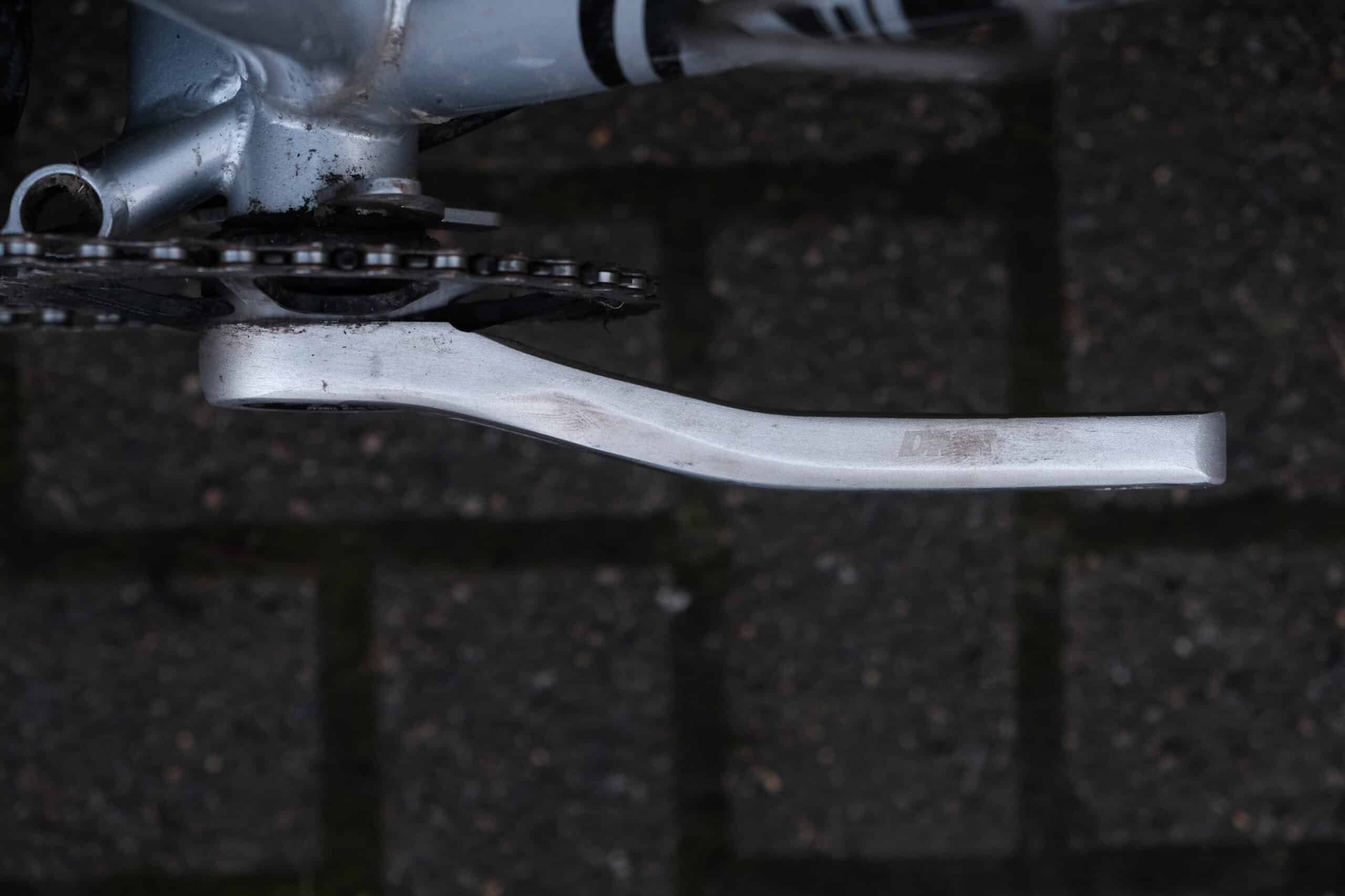 I’m not going to say these are ‘noticeably stiff’ or anything like that. Who knows? There comes a point when things are stiff enough and that’s that. They certainly aren’t flexy, is all I’ll say. They spin on a 30mm axle so are best paired to a frame that accepts external bottom bracket cups (so there’s decent room for bearings still). What I can say is that I like the shape of them; they don’t rub my footwear, nor have they taken bites out of my inside ankles. They’ve spent most of their time on a bike with a very low-slung BB height and they show impressively little in the way of battle scars and scrapes. The direct mount chainring is the three-bolt standard so you can run SRAM X-Sync rings as well as DMR’s own Blade rings. If you want some good-looking 165mm cranks in silver (or black), then these are a great choice.