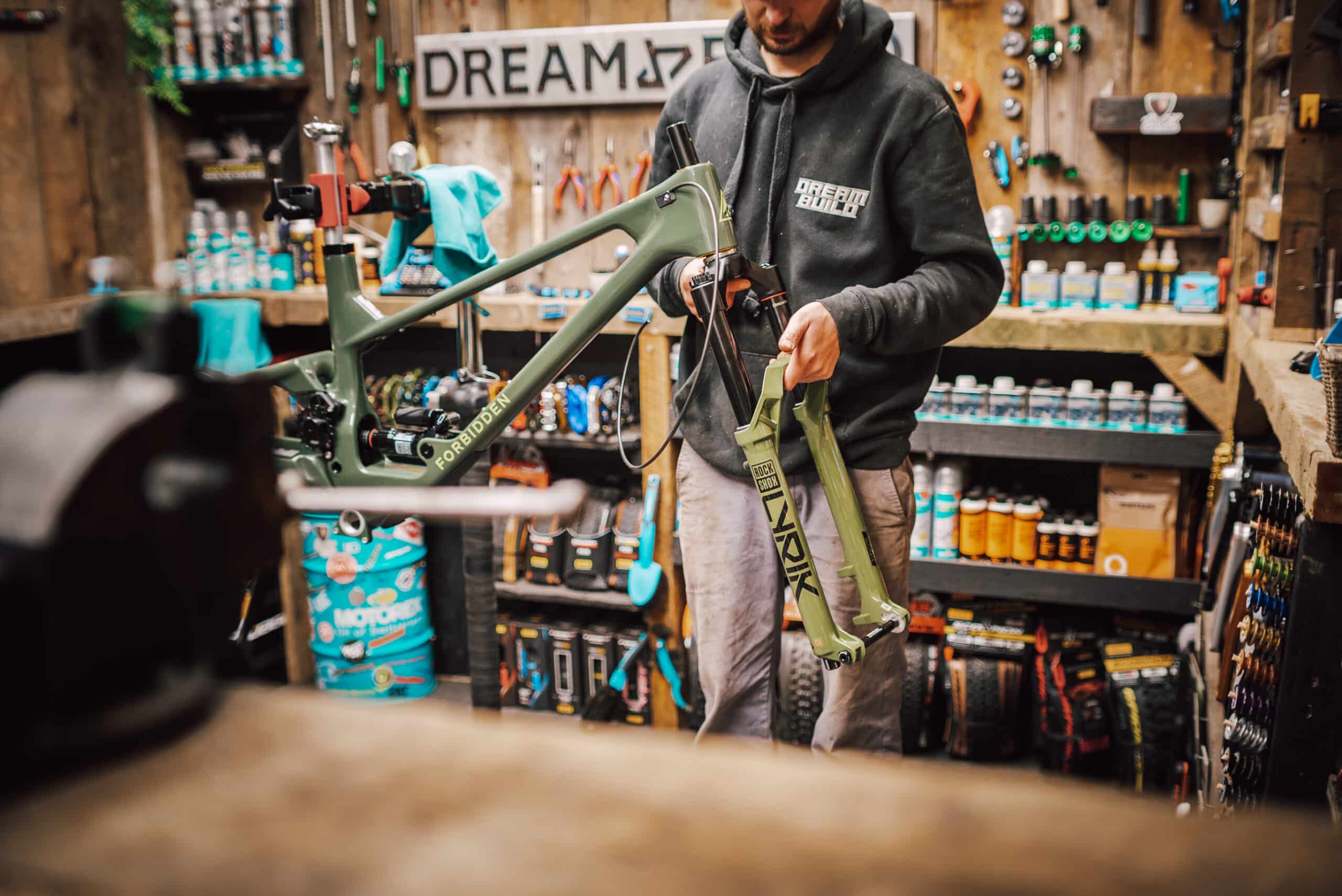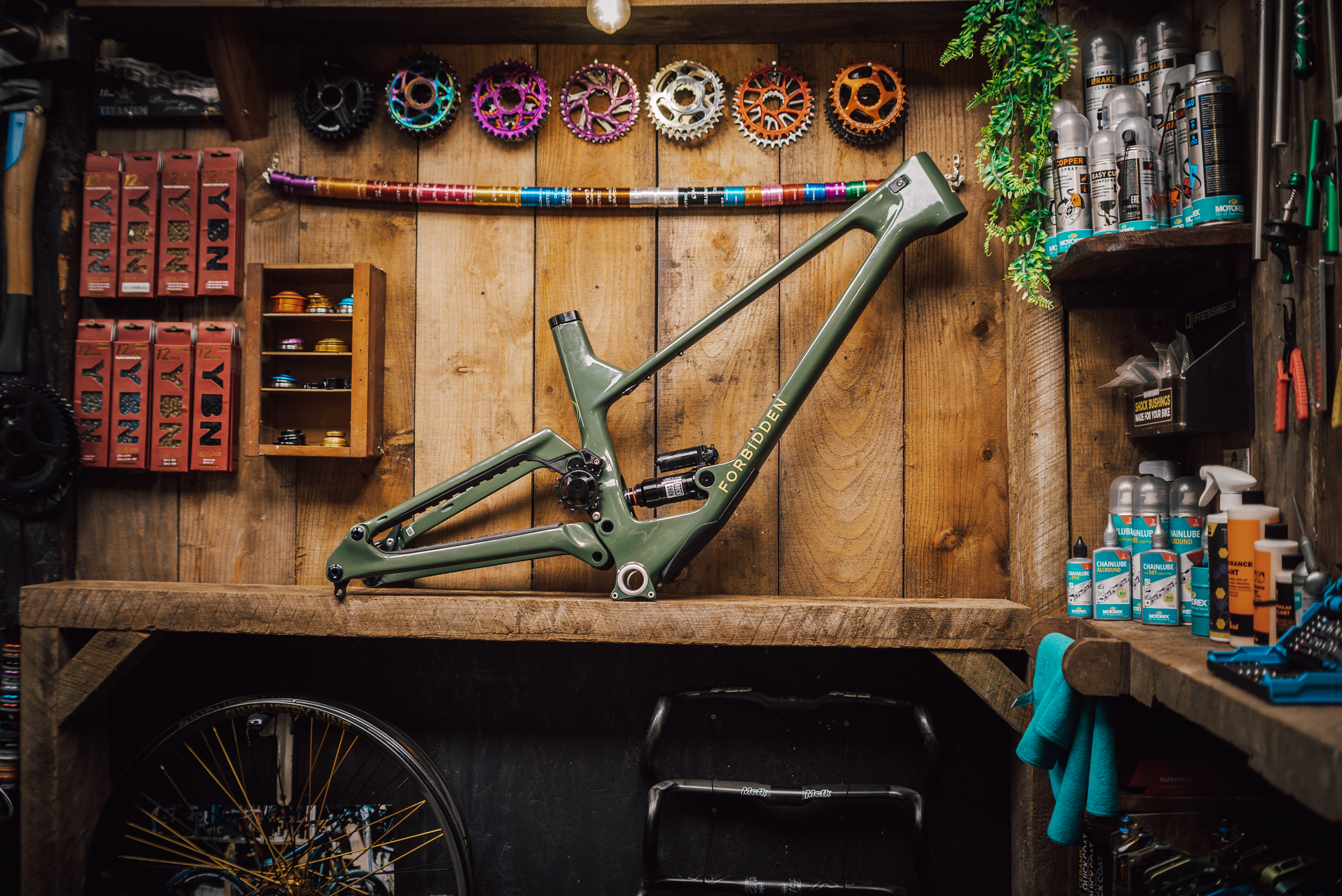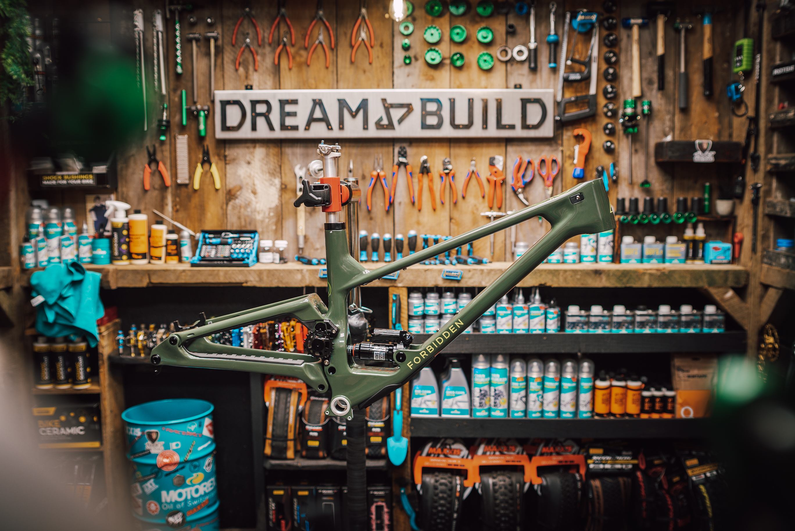 This one off custom bike has been created with the generous support of Forbidden Bike Company, SRAM, Industry Nine, Continental and Gee Milner (Dream Build). Featuring the new Forbidden Druid V2 in the all new Dr Greenthumb colourway (size Large), RockShox Lyrik Ultimate fork, RockShox Super Deluxe Ultimate Shock, Rockshox Reverb AXS seatpost, SRAM Code RSC brakes, SRAM X01 T-Type Eagle drivetrain, Industry Nine TR300/290 Carbon wheels, Industry Nine A35 Stem, Industry Nine iRiX headset and Continental tyres.