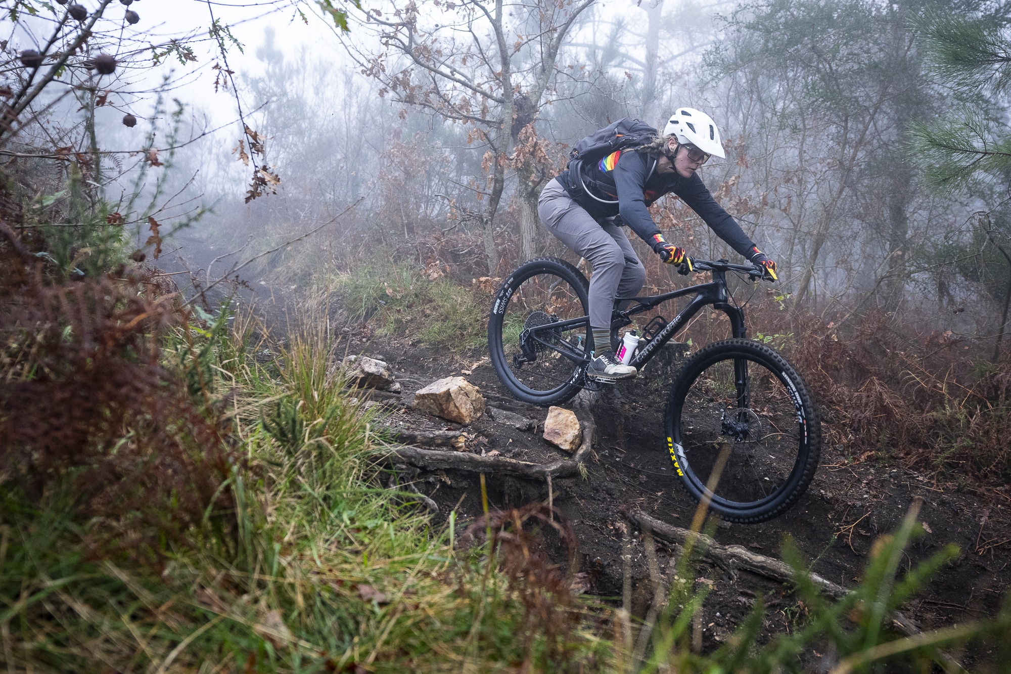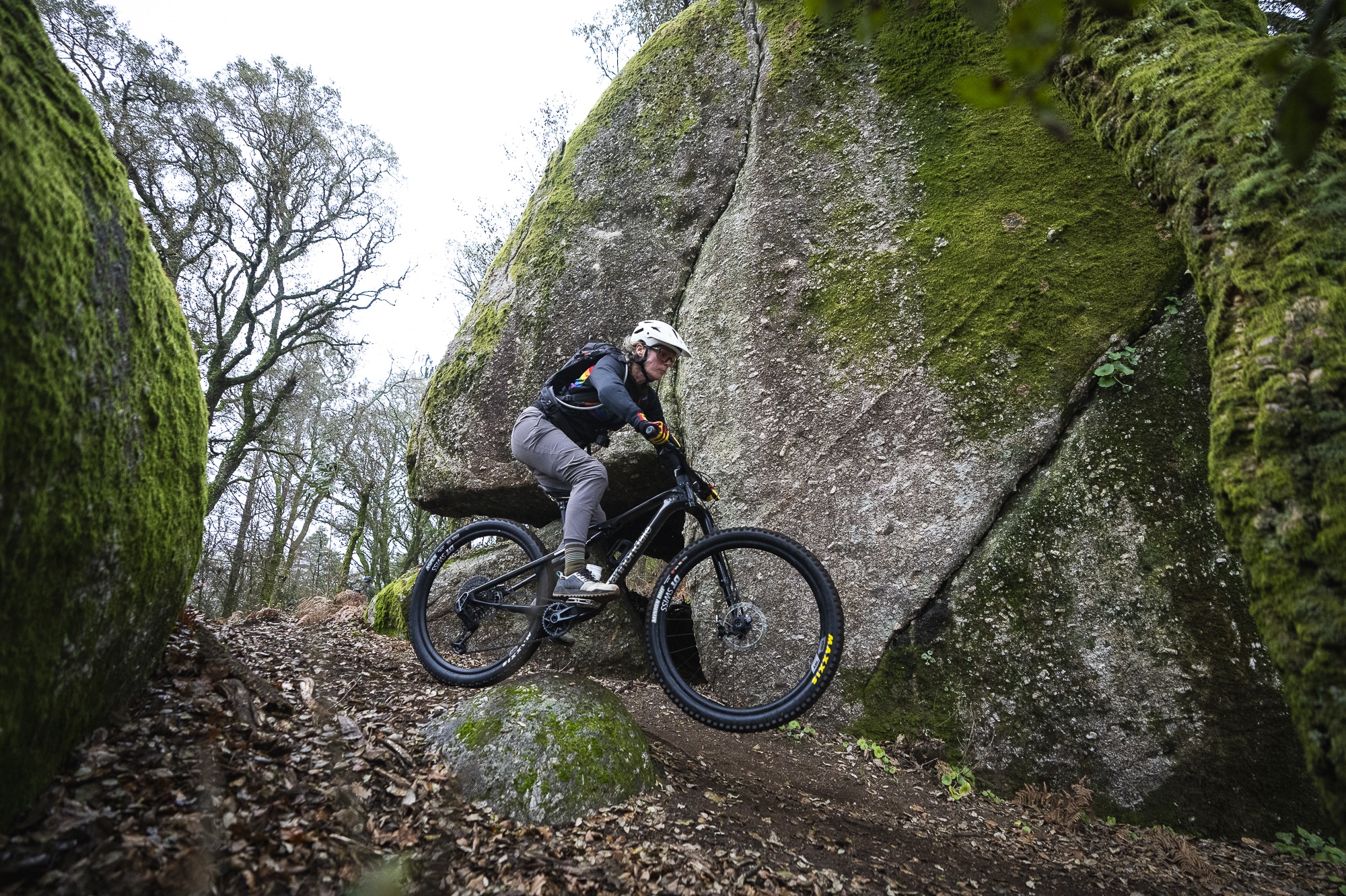 The two-position Fox Transfer dropper took me quite a bit of getting used to – it’s only up or down, with no infinite positions in between as I’m more used to. Catch it on your thigh on the return and you’ll have it sinking straight back down again rather than holding you on your perch. On especially undulating trails I found myself struggling to be seated when I wanted to be, and in turn struggling in be in the right gear – probably not assisted by the SRAM T-Type gear shifter pods, which I found a little alien and was still getting used to.