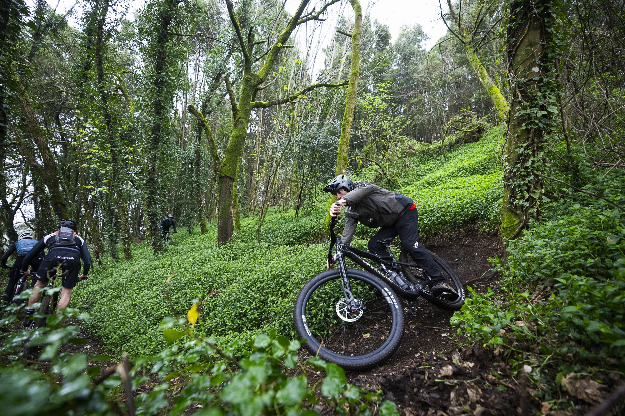 The fairly narrow bars felt in proportion, not twitchy – in fact the only time I felt aware of them was on the second day of riding, when on a different bike with wider bars I clipped a tree that I’d easily avoided the day before. The only shock sent through my body was on bottoming out on a decent drop to flat, but even then it was momentary and I just kept on rolling.