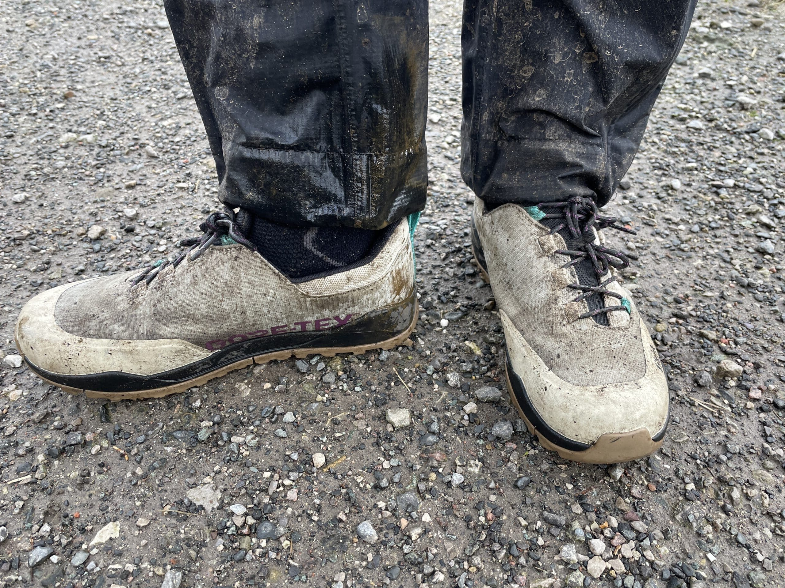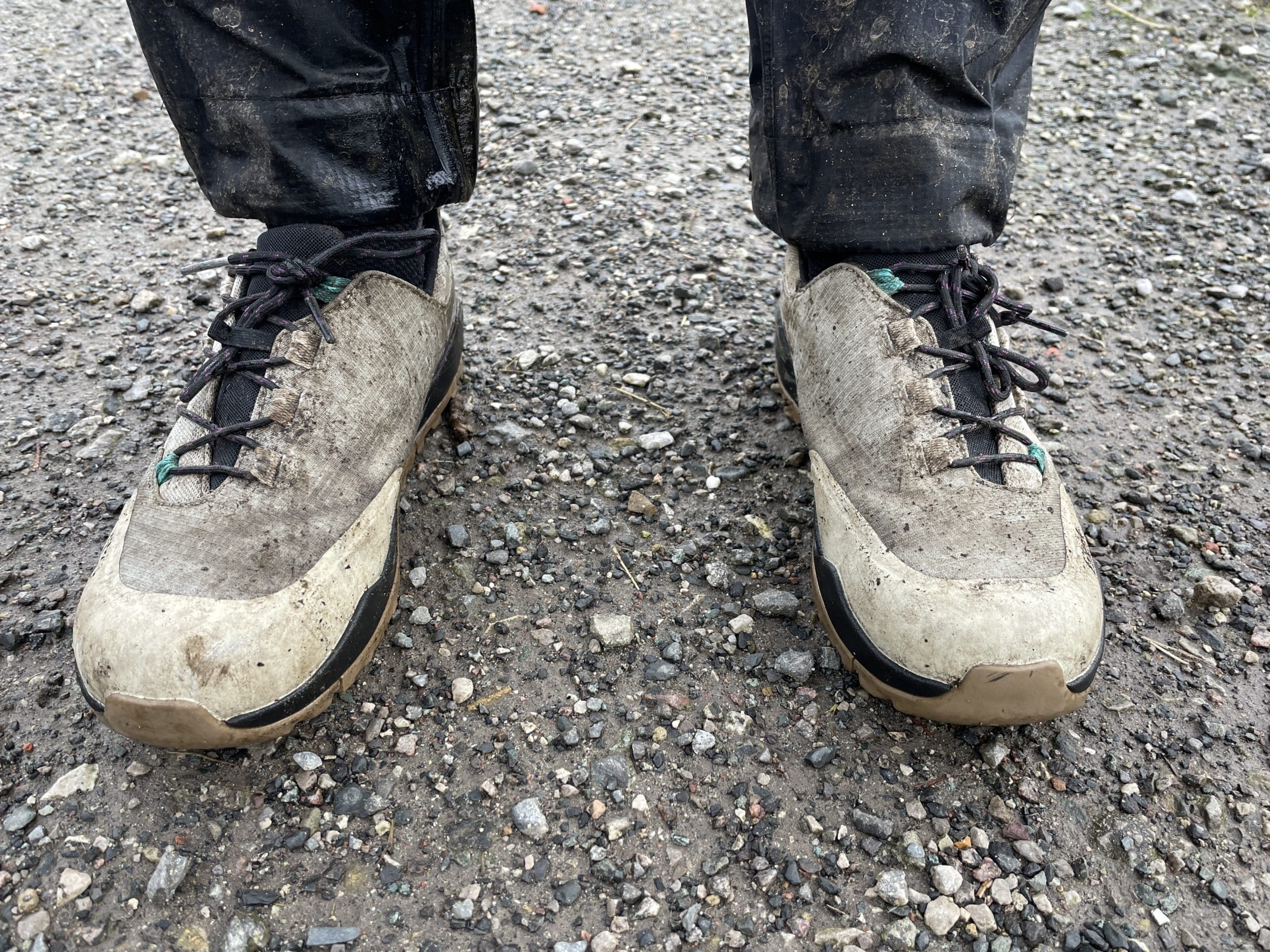 A decently tough toe box keeps your toes protected, and the whole upper is waterproof. Not just claimed to be waterproof, but actually waterproof. Not too hot either – and don’t mistake these for a ‘winter’ option, as they’re not warm and insulated, just waterproof. Unfortunately, without a hole in the top you’d never get your foot into shoes, so the water does inevitably get in when things are splashy rather than just ‘morning dew’ damp. In fact, the inside front of the ankle seems especially low cut, and this was always the place that I’d feel the chilling splash of water first. Either up off the trail and tyres, or down off my trousers. Pairing them with a waterproof sock helped a lot – but then you might wonder why bother with having waterproof shoes at all. I’ll come to that.