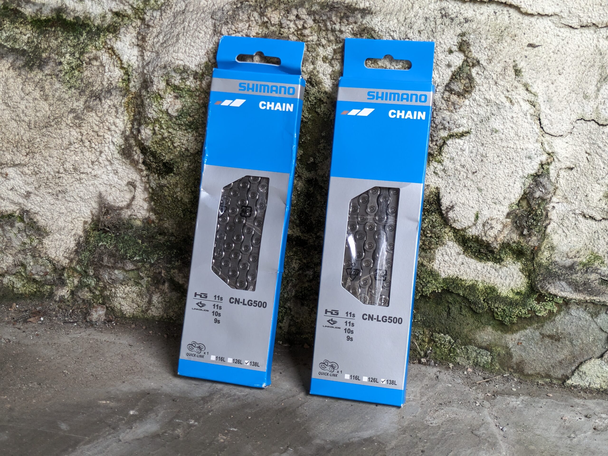 You guessed it, Linkglide for maximum durability. “Developed for better contact with gears and smoother shifting under high load, giving efficient pedalling, increased durability and near silent running“. Comes complete with Quick Link for tool free assembly. Approx weight 257g. 138 links. We’ve got two chains because this CUES stuff is going on a cargo bike.