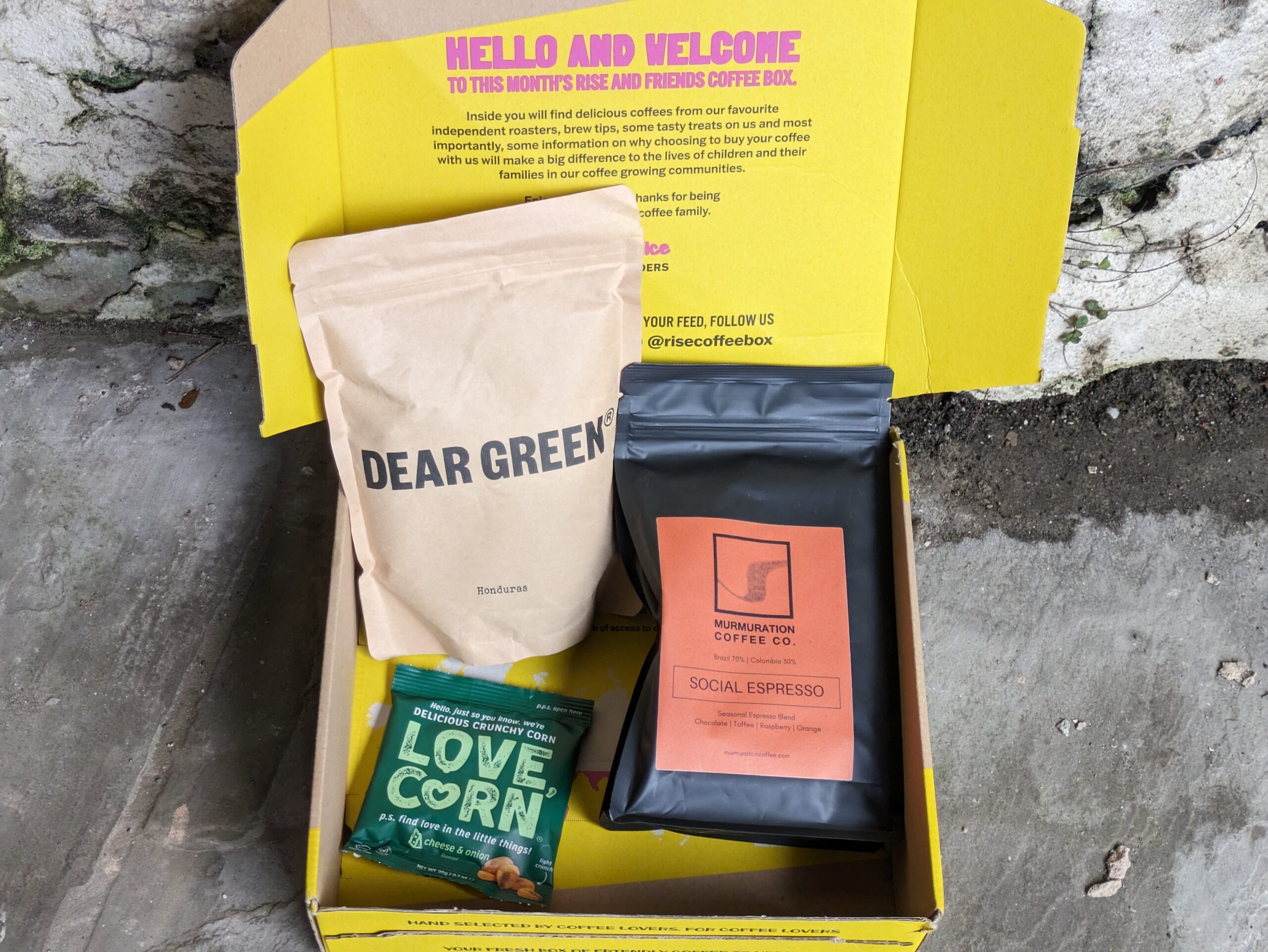 A coffee subscription. Each Eco friendly, sustainably sourced and recyclable box contains: your chosen quantity of coffee, key facts on the roasters/beans/farmers, tasting notes, brewing tips, a free treat from one of our food and drink partners.