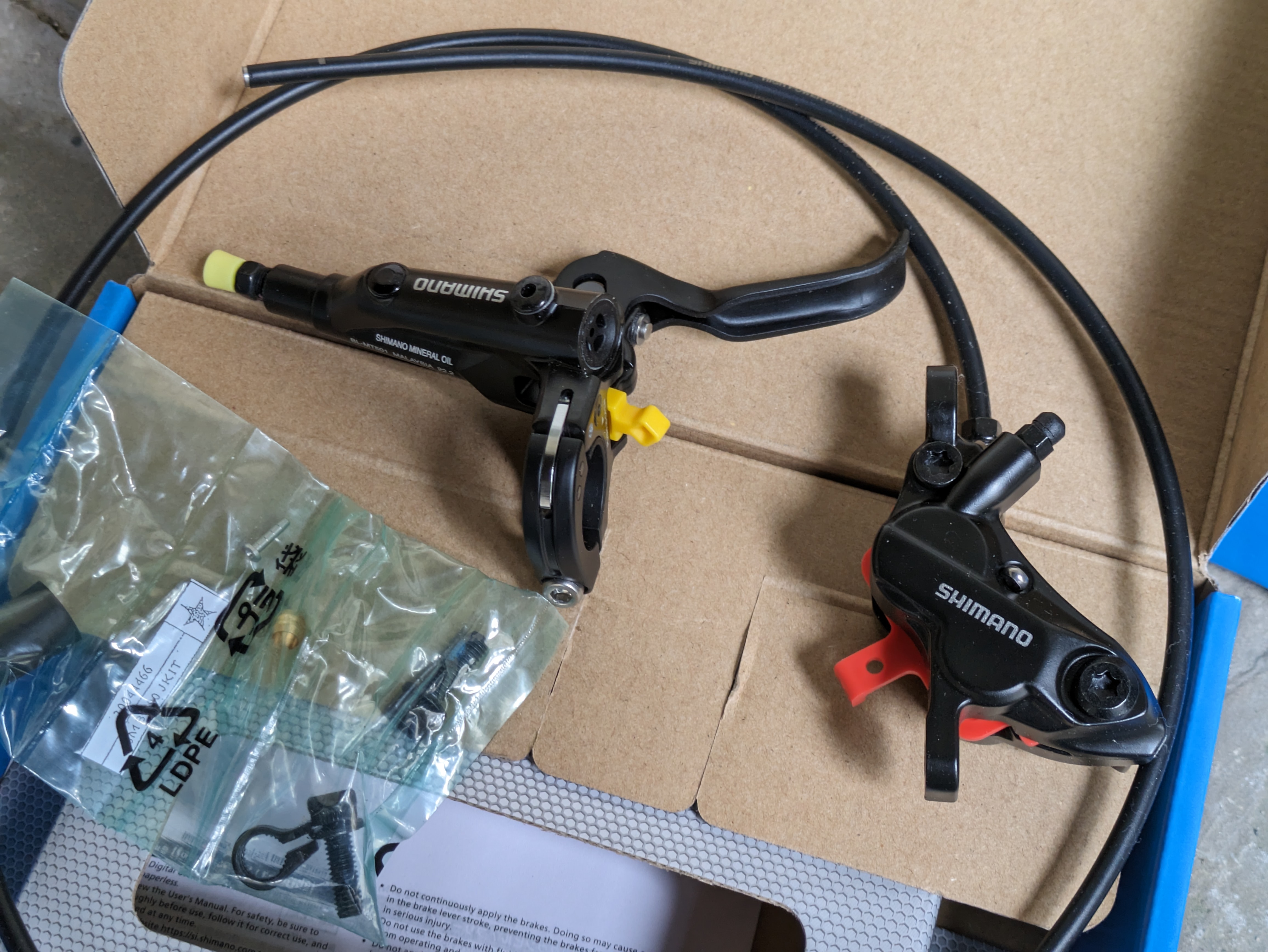 This is not a CUES product but it’s a brake that’s being promoted as being a good partner for CUES-ed mountain bikes. Fully bled hydraulic 4-piston disc brake. Hose lengths: 1,000mm front, 1,700mm rear. Comes without adapters or rotors. Hinged brake clamp. I-spec-II compatible. This kit comes with resin pads, spare olives and barb.