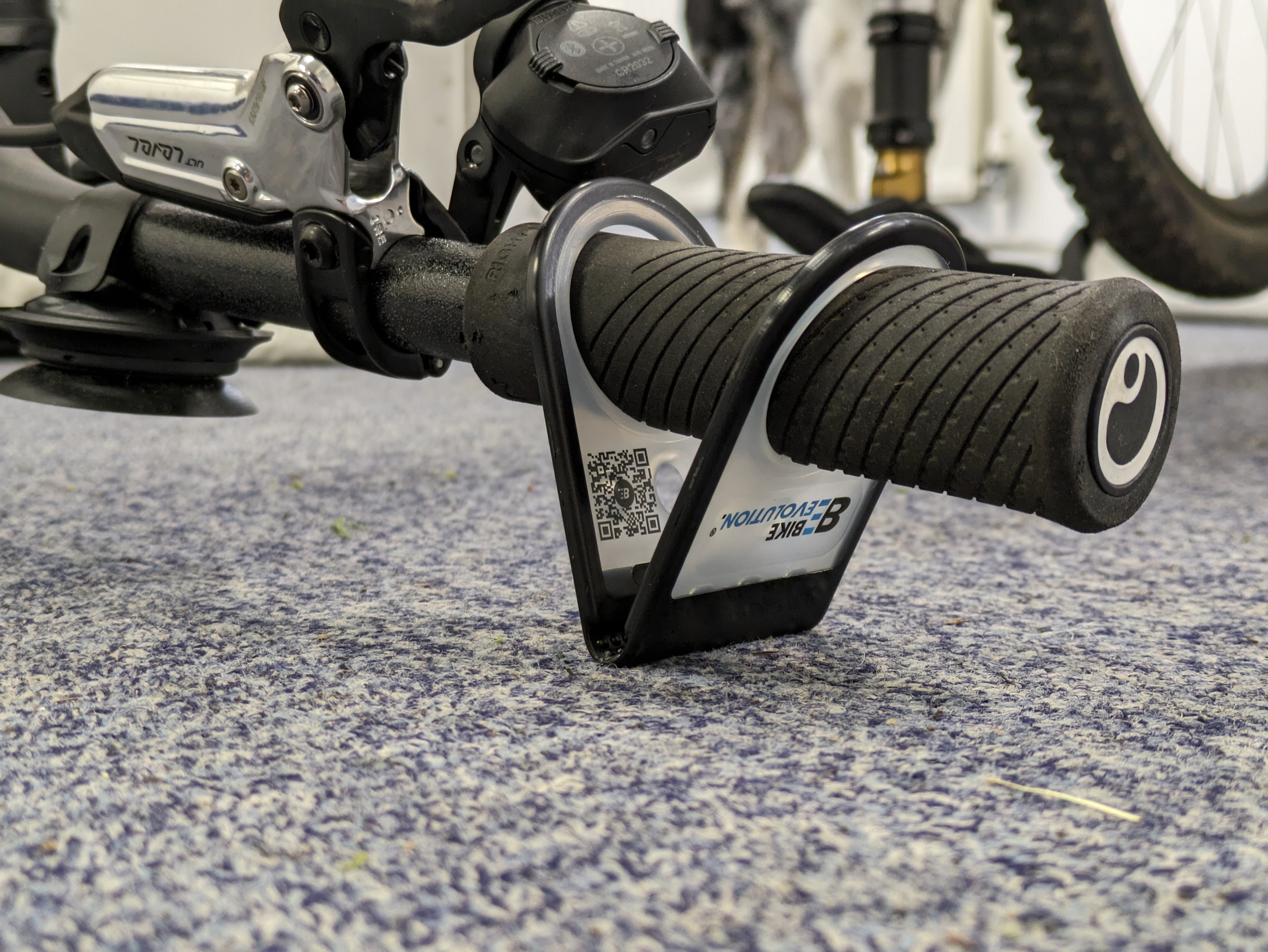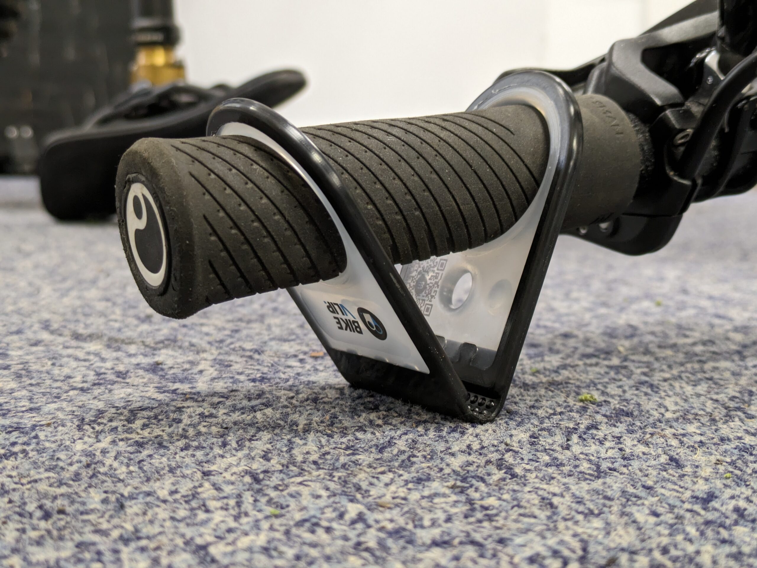 Ok. So this is very Euro and very e-bike. But it’s a thing that some folk will appreciate. The BikeVlip is bicycle repair stand. Simply fold the BikeVlip over and slide it onto the handlebar. The designers state that it protects against damage to the handlebars but we immediately thought its more effective/understandable role was protecting e-bike controls/displays when the bike is upside down being worked on, no?