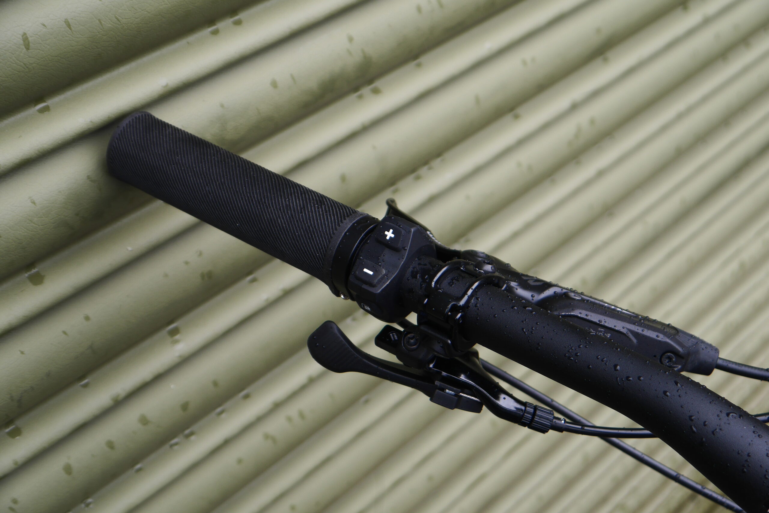 Anyhoo, what’s this ELyte 150 machine all about then? It’s one of the new breed of mid-power (hence ‘middling’) pedal assist mountain bikes that are coming in around the 20kg mark. The system used on this bike is the Bosch SX which gives out 55Nm of torque and up to a peak power of 600 watts. That wattage is pretty much the same as a full-power ebike but… you’ll have to spinning those cranks like roadrunner to achieve that level of assistance. This ain’t a sit-and-lazy-crank-it-out affair. The internal battery is 400Wh capacity and the bike comes with a 250Wh piggyback battery also.