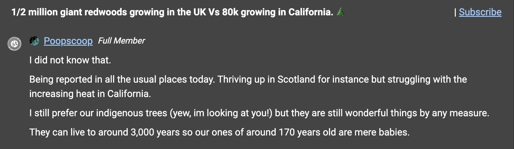 A hearty congratulations this week go all the way to the one and presumably only Poopscoop for this winning woody thread…