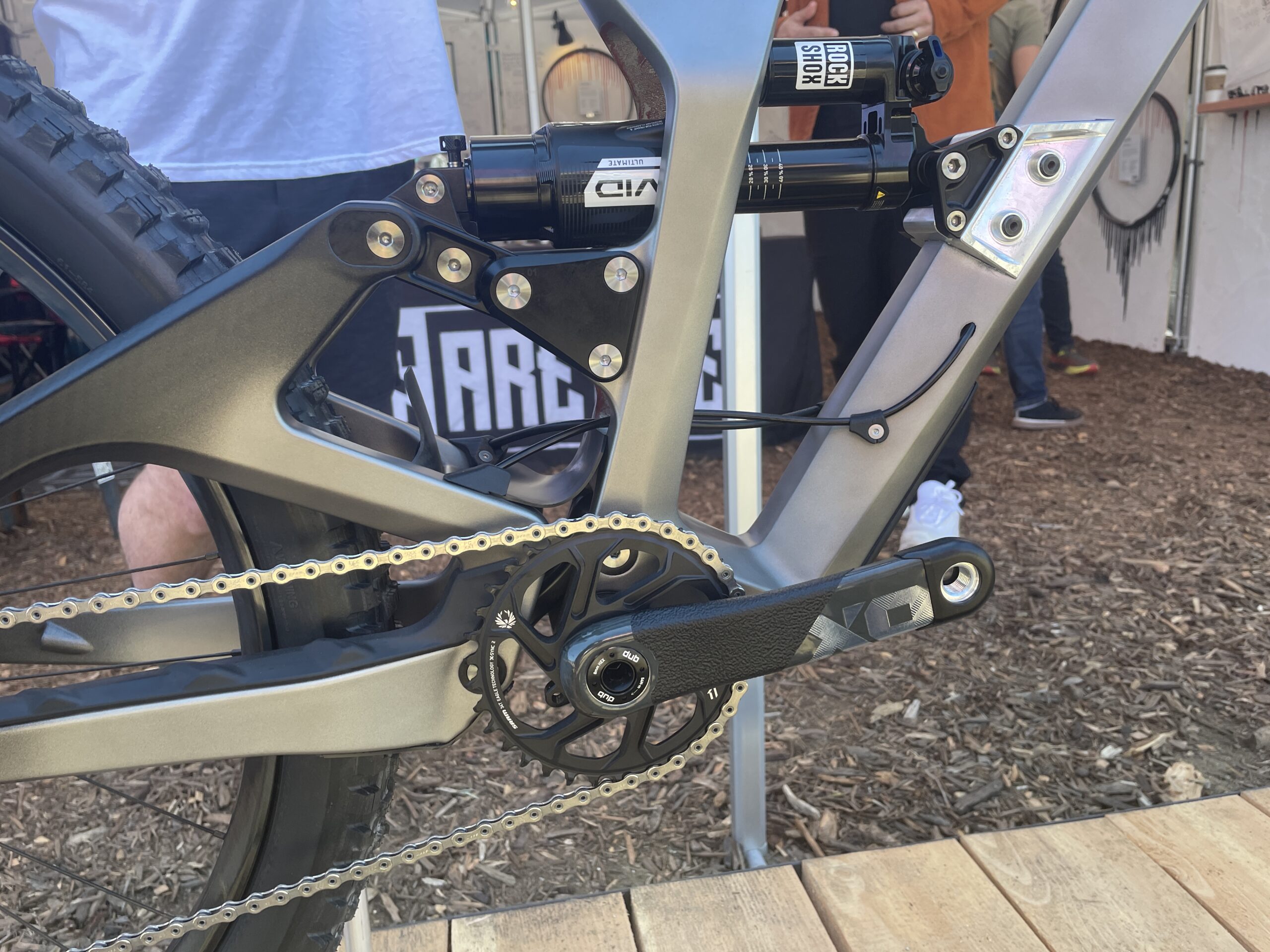 We have our designer, Vlad, who kind of came up with this. I’m not super, super familiar with his exact work. He’s kind of our little wizard that we have in the back corner! But yeah, I think it’s sort of still just a similar four bar situation to what we have on the Arrival. It’s just like a modified version of that. Tuned specifically for higher pace, higher impact stuff. He’s got a lot of experience on a lot of different bikes and he’s got a wealth of knowledge, a little book in his head of just all the numbers that he likes and what works best for him so he kind of just pulls it out of the hat and he’s just really good at it.