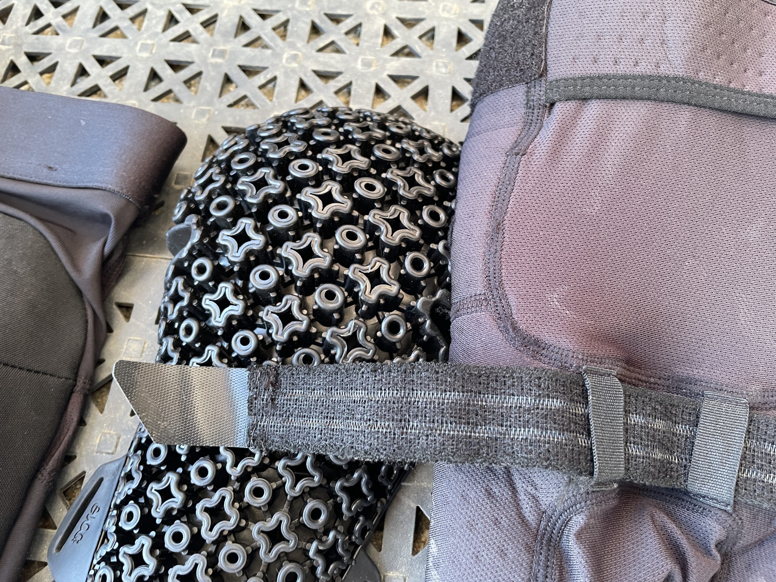 These are still at the prototyping stage and won’t be released for a while yet, but knee and elbow pads are coming from Evoc. Using the same TPU material used in their chest/torso protector, they’re planning two different kneepads, plus an elbow pad. The burlier kneepad includes the amusingly named ‘Power Flaps’, which are ears of TPU built into the protector, through which straps are threaded so you can tighten them to just the fit needed. Meanwhile, the multicoloured bags are made from scraps of material left over from the rest of their manufacturing processes.