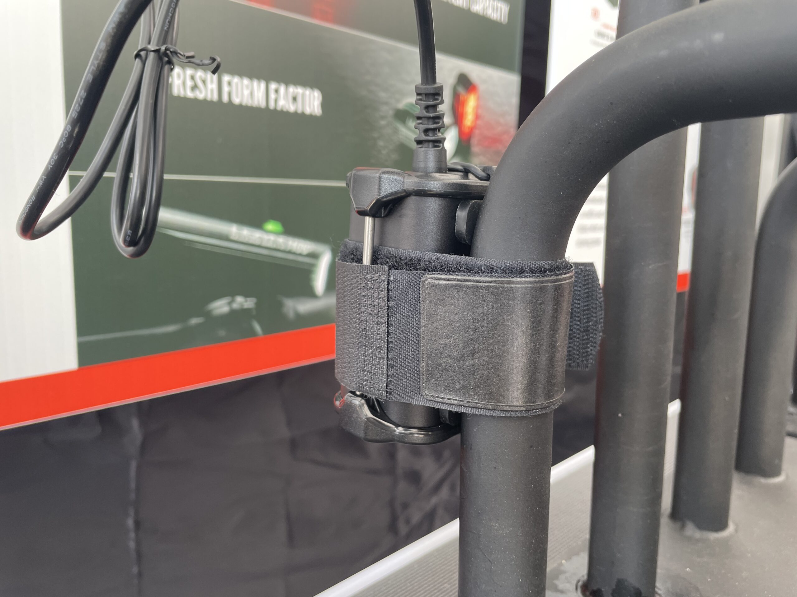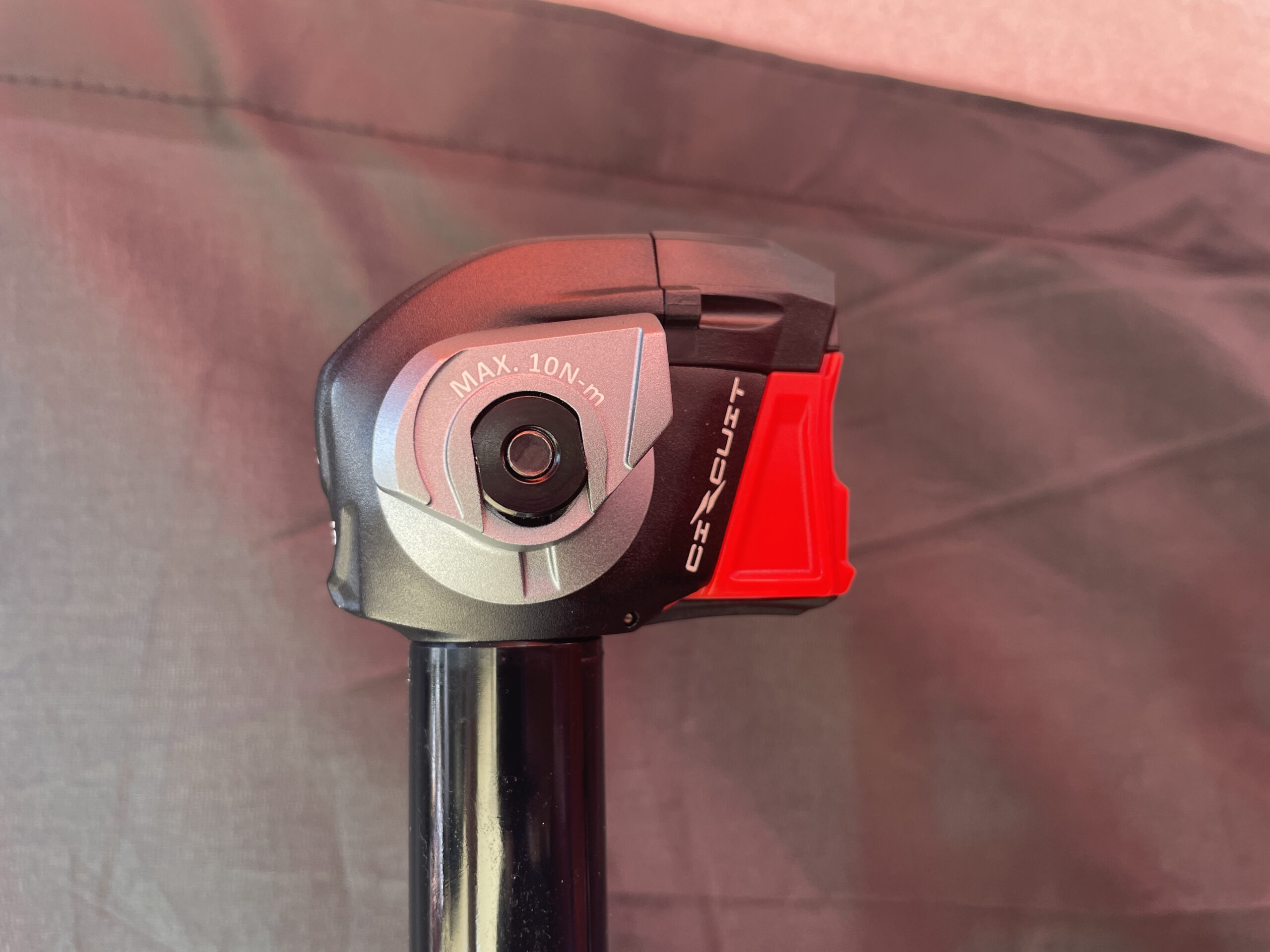 They were also showing their wireless dropper post. This has a battery designed to be short enough to leave room under your saddle, leaving space for a pack perhaps. The battery is specifically designed to be removed horizontally, with a reasonable amount of the battery inside the body of the post – this means that even if the catch comes undone, you should have the battery sliding out and dropping straight to the floor. They include a red ‘blank’ so if you’re charging your battery, the clip isn’t flapping at risk of damage, and the internals can be kept clean and covered. Neat thinking.