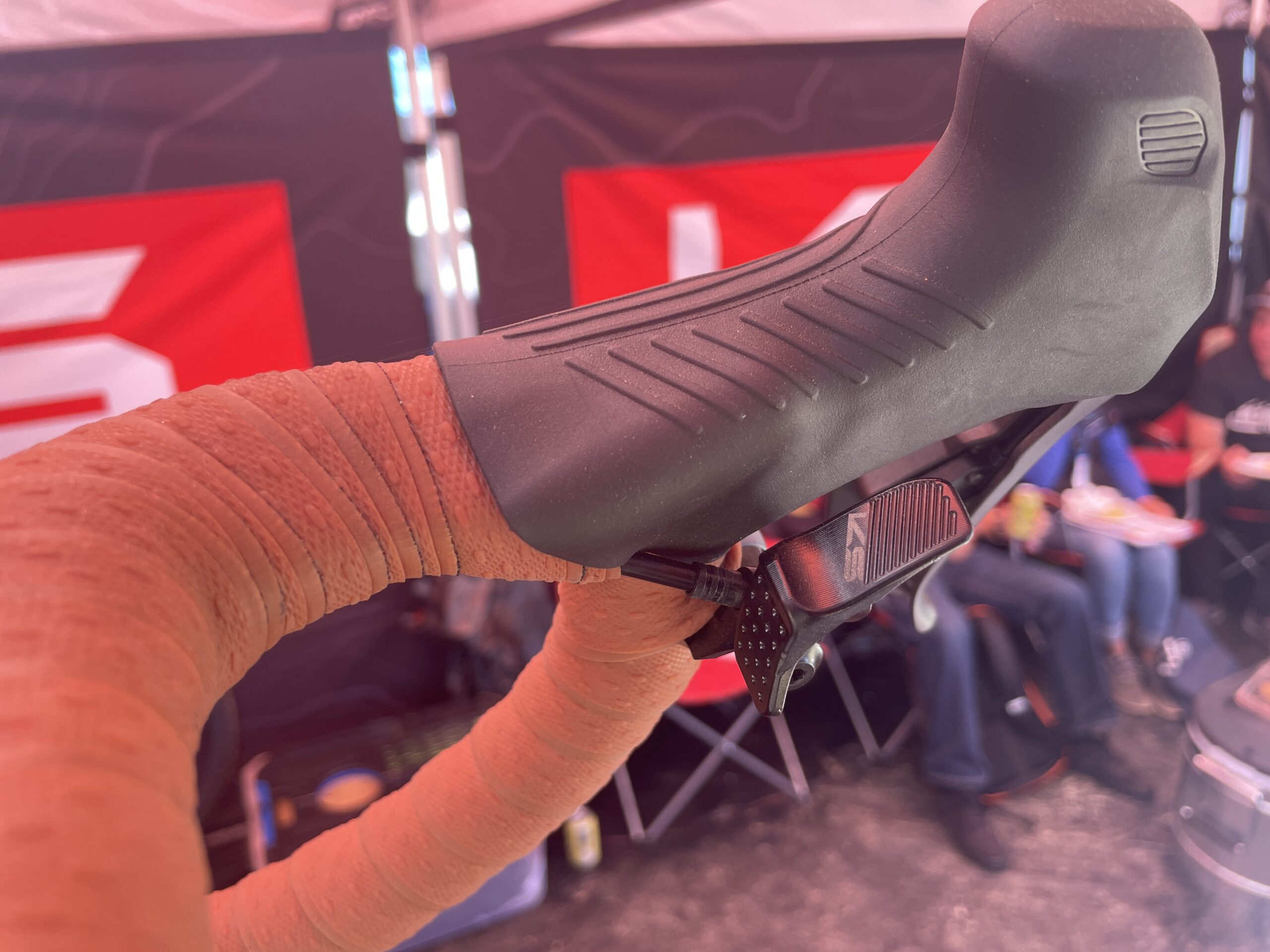 KS has a new GTC gravel fork, plus was showing their gravel stem, bar and suspension dropper post. A pretty neat little actuator is tucked away in the left bar, separate to the shifters and brakes.