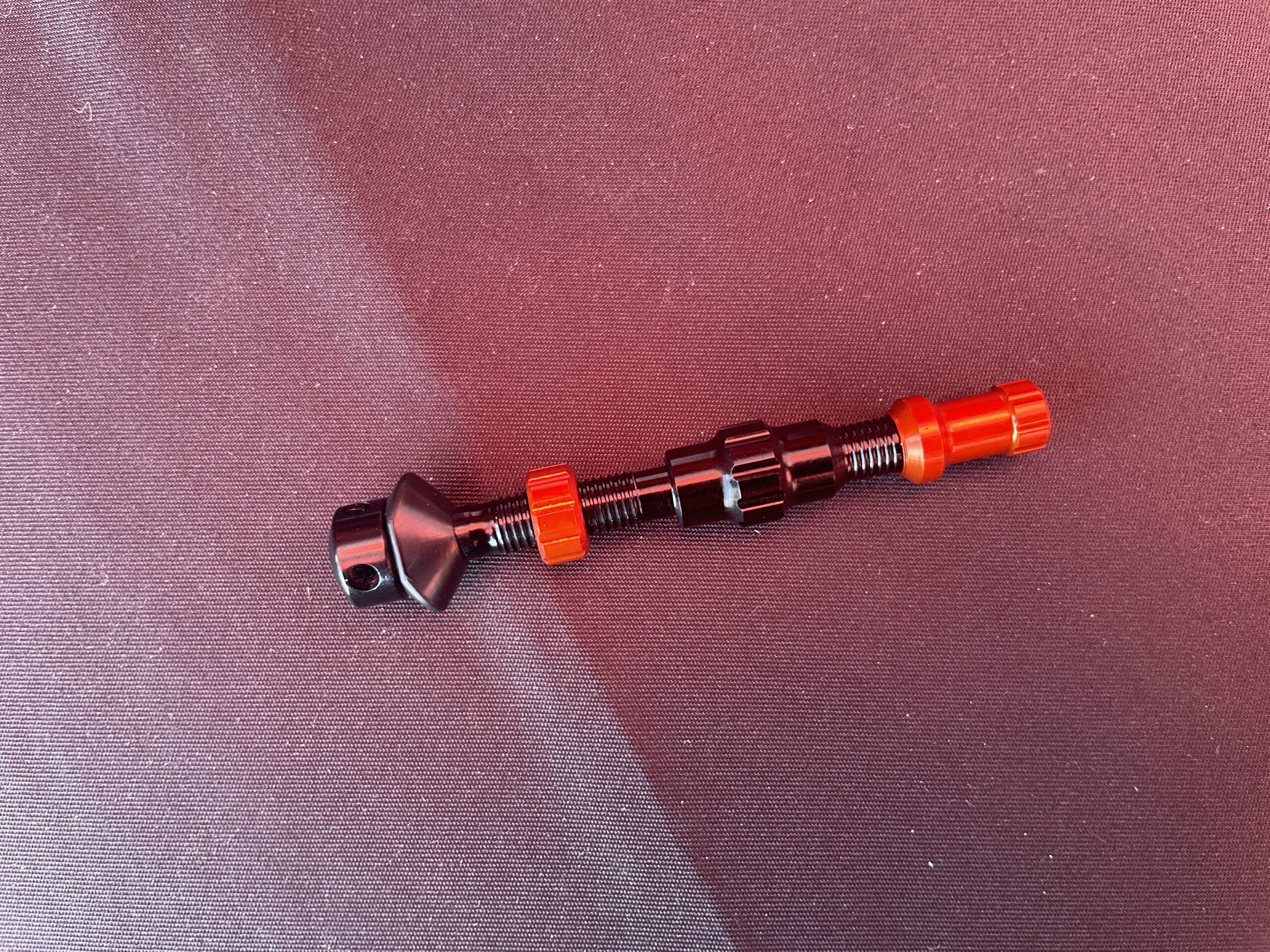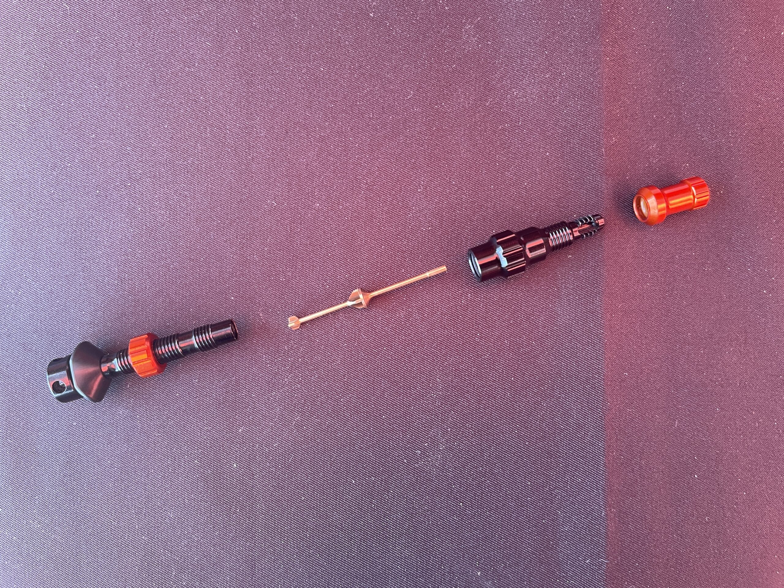 A nice looking new take on valves from Stan’s. It has multiple threads on it, so you can screw off the bit you want to without inadvertently undoing everything else. The valve core/needle is designed to let in as much air as a standard valve does with the core removed, but if you do need to get a big blast of air in, you just unscrew the top section. If things get clogged, it’s a simple pin/rod to pull out and wipe off. The base will fit a variety of narrow and wide rim shapes, and the valve is compatible with tyre inserts. Plus, a selection of pretty coloured bits is available to keep things decorative. Looks like a winner.