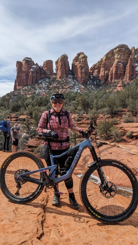 Riding is incredibly personal for me – it’s my sanctuary, my meditation and way to connect with myself and nature. Every time I find a way down a steep off-camber trail over rocks and roots or manoeuvre my bike around a tight switchback I feel a sense of elation and deep joy. The last 20 years as a parent have been amazing but also deeply painful and challenging at times and learning to ride mountain bikes, especially on steep, nadgery terrain, has given me a space where I can do something for me and restore myself. It’s helped me love myself and my body, and I am a better parent and person for doing it.