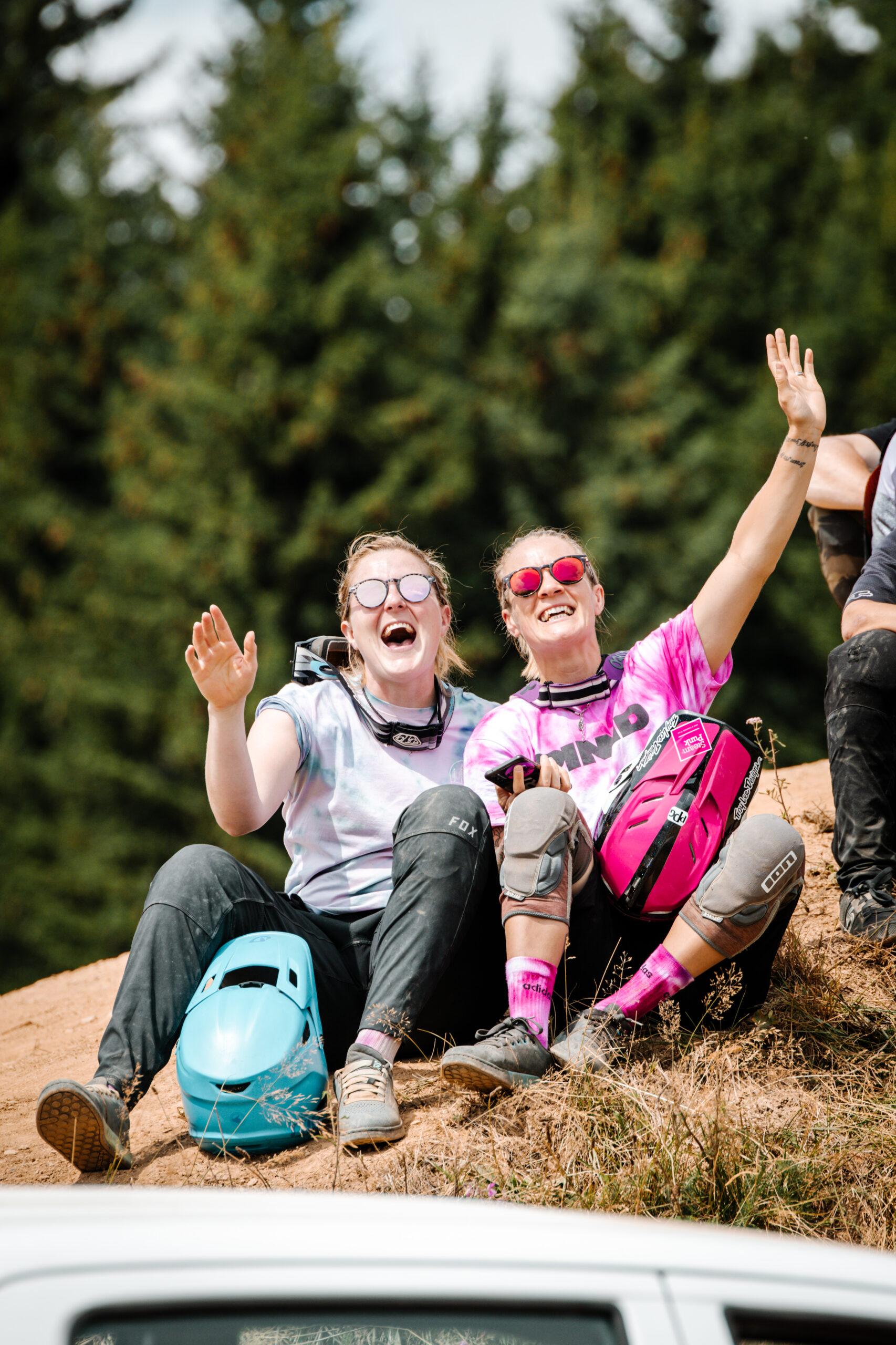 “We started our first winter in Les Arcs. And then we realised that because we weren’t quite ready to go home, we could do a summer. And it had become super apparent that everyone had mountain bikes in the summer. I’d made really good friends with Emily Horridge [who] it turns out, was super badass on a mountain bike – I didn’t even know! So we were like ‘We need to buy a bike. I’ve never mountain biked before so, yeah, just something that’ll last us a summer so we can play in the summer until the winter comes back around’. And then that was literally the start of it.”