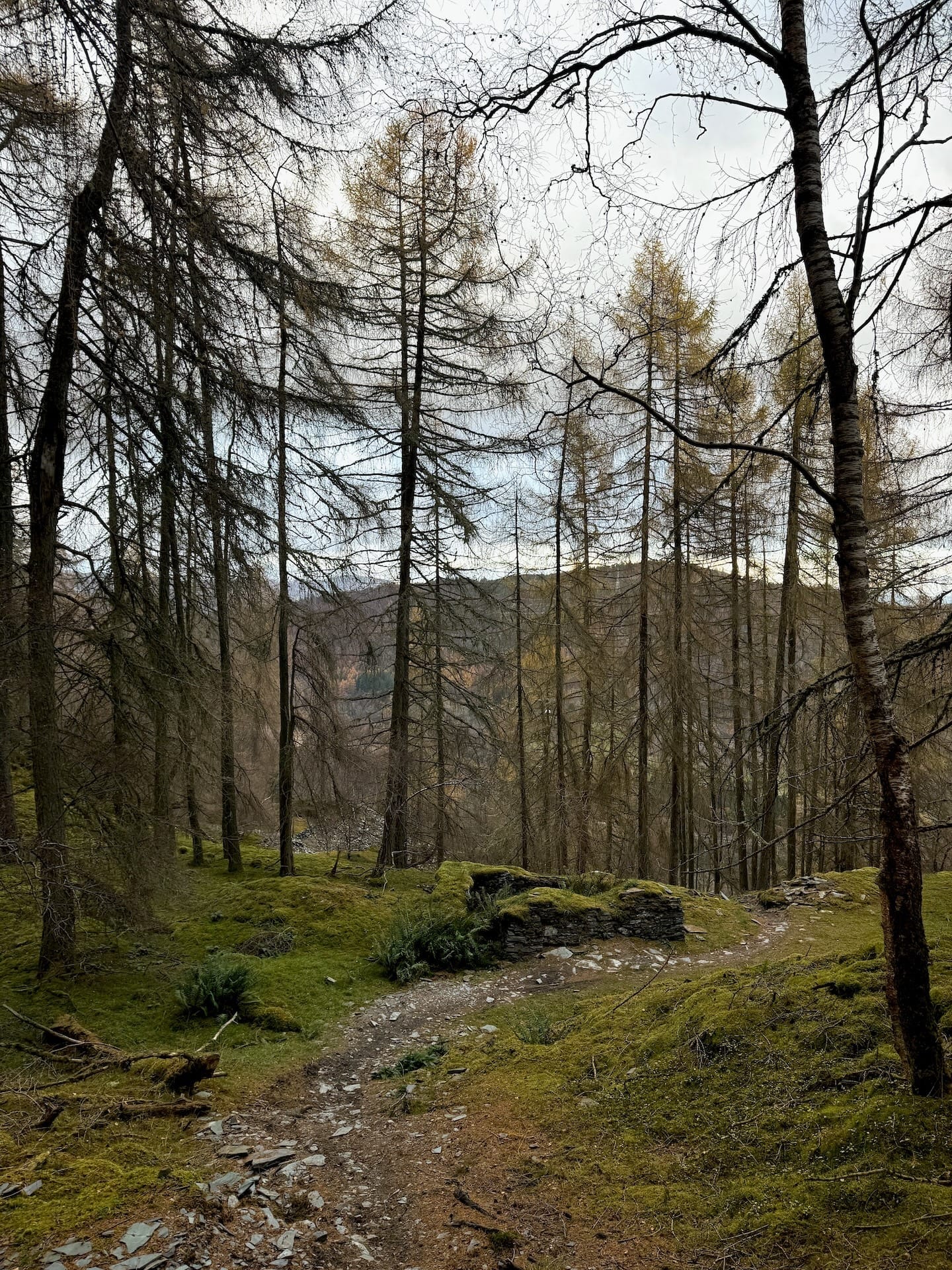 Climbing, I saw a cow on the trail (escaped), a hare, a sparrowhawk, and a murder of crows. The Travelator climb treated me to a murder of lungs, and I stopped to clear condensation from my spectacles and eat a snack. That week I relied on dark chocolate Brazil nuts, crayfish sandwiches, avocado wraps, bacon rolls, various mushed fruit bars, coffee (lots of), fistfuls of nuts, and tartiflette (not on the trails). Even then I was hungry most of the time.