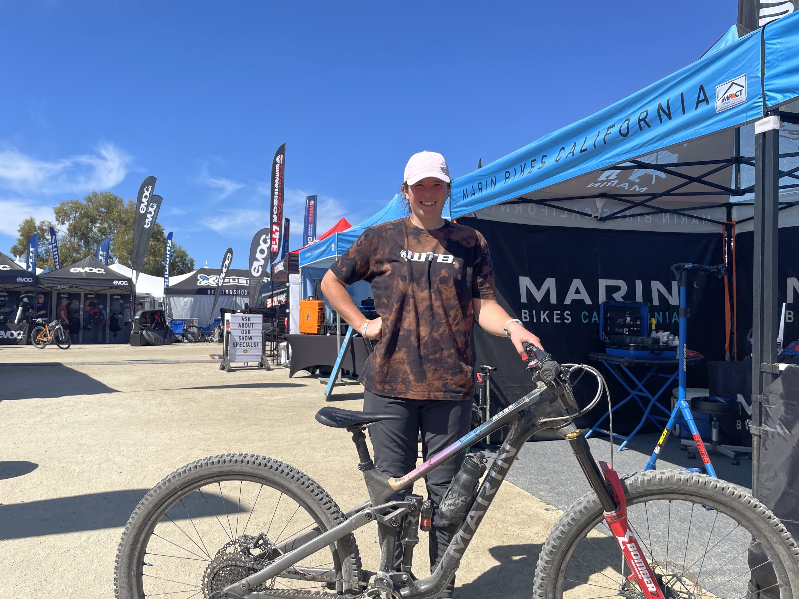 Martha Gill was out at Sea Otter racing Dual Slalom and Downhill. She took the gold in Dual Slalom, finally breaking Jill Kintner’s 11-year run on the top spot. I caught up with her at the Marin booth just as Martha had finished fourth in the Downhill.